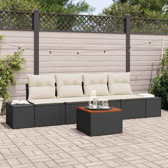 - Lieferumfang: 2 x Mittelsitz mit Stauraum und wasserabweisender Tasche, 2 x Sofa mit Stauraum und wasserabweisender Tasche, 1 x Gartentisch