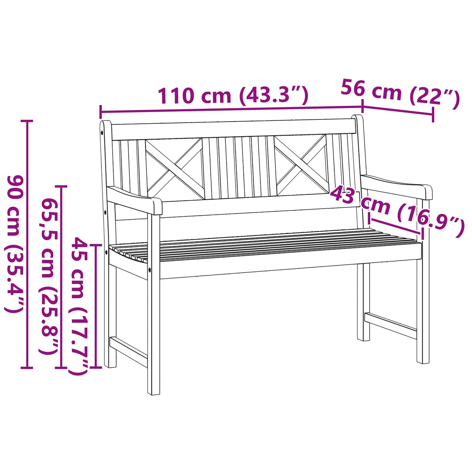 Gartenbank 110x56x90 cm Massivholz Akazie