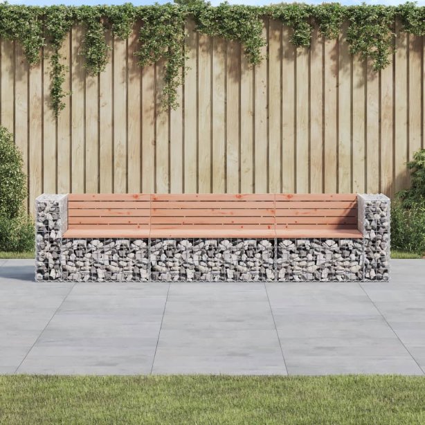 Mit dieser Gartenbank schaffst du einen angenehmen Sitzplatz in deinem Garten! Sie wird ein echter Blickfang in deinem Außenbereich sein. Massives Douglasienholz: Die Sitzfläche ist aus massivem Douglasienholz gefertigt und daher auf eine lange Lebensdauer ausgelegt. Douglasienholz ist selbst bei Witterungseinflüssen sehr robust und erfordert wenig Pflege.Robuster und stabiler Sockel: Die Gartenbank verfügt über einen Sockel aus verzinktem Stahl, der mit Steinen und Kies befüllt werden kann und so zur ansprechenden Optik der Bank beiträgt. Das Maschengitter des Gabionenkorbs ist an jeder Kreuzung mit Quer- und Längsdrähten verschweißt, was für zusätzliche Stabilität sorgt.Kompakt: Die Gartenbank ist dank ihres schmalen und kompakten Designs perfekt für begrenzte Außenbereiche geeignet.Vielseitig einsetzbar: Die Bank eignet sich für Gärten, Hinterhöfe, Terrassen, geheime Ecken und vieles mehr. Gut zu wissen:Dieses Produkt besteht aus 2 Eckbänken und einer Mittelbank.