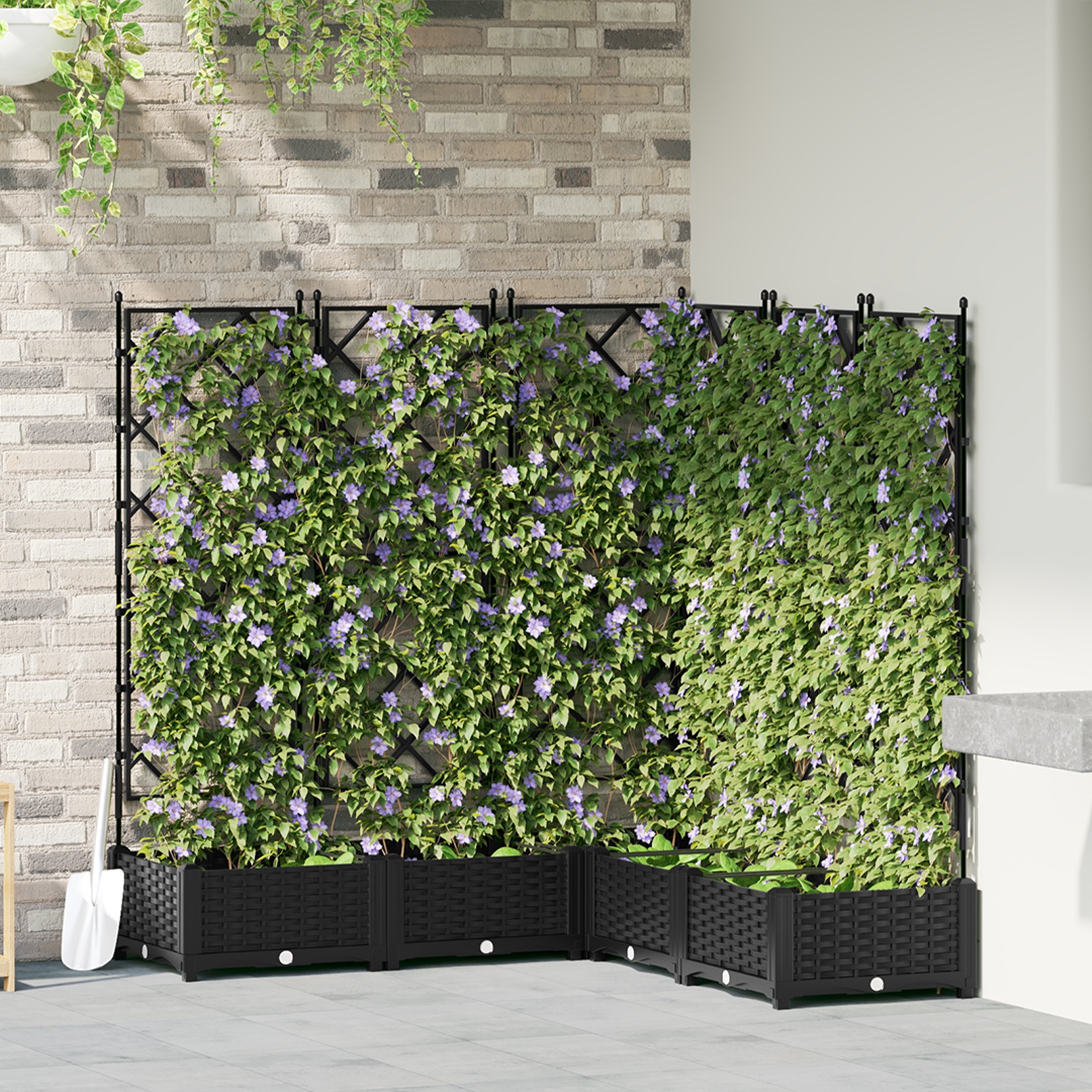 Dieser Gartenblumenkasten mit Gitter ist das perfekte Accessoire für alle Gartenfans, egal ob drinnen oder draußen. Er besteht aus starken Materialien und kombiniert Praktikabilität mit einem coolen matten Finish. Mit 120 x 120 x 125,5 cm gibt's genug Platz für viele Pflanzen und Blumen, sodass du richtig zeigen kannst, was du kannst. Moderner Stil: Der Blumenkasten hat ein schickes mattes Finish, das sich gut in Innen- und Außenräume einfügt und deinen Gartenbereich aufwertet. Für drinnen und draußen: Super vielseitig, perfekt für jeden Ort, von sonnigen Terrassen bis gemütlichen Innenplätzen. Robustes Material: Aus wasserdichtem Kunststoff gefertigt, hält dieser Blumenkasten verschiedenen Wetterbedingungen stand und sorgt dafür, dass deine Pflanzen sicher sind. Höhenverstellbares Gitter: Das höhenverstellbare Gitter nutzt den vertikalen Raum optimal aus und lässt Kletterpflanzen aufblühen, für ein schönes Garten-Display. Einfache Pflege: Reinigung ganz easy; einfach mit einem feuchten Tuch abwischen und auf aggressive Chemikalien verzichten, damit er lange gut aussieht.