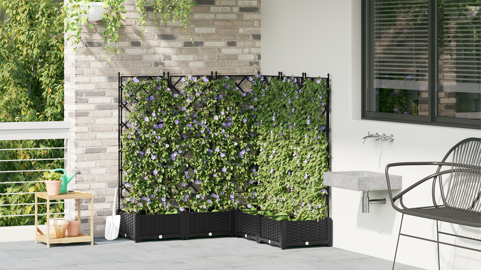 - Lieferumfang: Blumenkasten mit verstellbarem Gitter