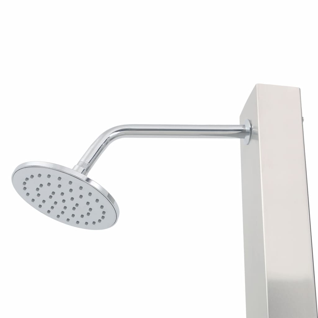 Dieses multifunktionale ghat ein stilvolles Design. In Kombination mit einer eleganten Duschwanne ist dies eine großartige Ergänzung für Ihren Pool und andere Außenbereiche. Die Duschsäule ist aus langlebigem, gebürstetem Edelstahl hergestellt und weist ein schönes, geschwungenes Design auf. Es hat eine Regendusche und einen Handbrausekopf, der einfach mit einem Knopf ausgewählt werden kann. Genießen Sie ein wirklich entspannendes Duscherlebnis und den modernen Stil dieses wunderschön gestalteten Duschpaneel-Systems! Diese Duschtasse bietet ein Höchstmaß an Hygiene, Langlebigkeit und Korrosionsbeständigkeit. Die Bodenplatte ist mit einem feuchten Tuch leicht zu reinigen. Zusätzlich sind die Befestigungslöcher für eine einfache Montage vorgebohrt. Das Duschpaneel-System ist einfach zu montieren. Montagezubehör ist ebenfalls im Lieferumfang enthalten.