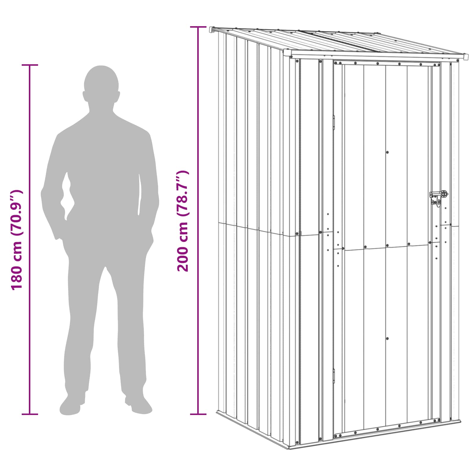 Diese Metallgartenhütte ist eine moderne Lösung für die Lagerung im Freien und verbessert jeden Garten oder jede Terrasse. Aus langlebigem Metall mit einem schlichten rechteckigen Design vereint sie Funktionalität und Stil. Das minimalistische Aussehen macht sie passend für verschiedene Außenbereiche und sorgt für einen sauberen, gepflegten Look. Rostbeständige Metallkonstruktion Die Hütte ist aus robustem Metall gebaut, das eine hohe Widerstandsfähigkeit hat und auch bei schlechtem Wetter lange hält. So bleiben deine Gartenwerkzeuge und anderen Schätze bestens geschützt und der Außenbereich bleibt ordentlich. Schlossmechanismus für Sicherheit Dank des Schlossmechanismus am Tor bietet diese Gartenhütte zusätzlichen Schutz. Sie gibt dir ein gutes Gefühl, weil sie deine Wertsachen vor unbefugtem Zugriff sichert, während das praktische Design den Zugang leicht macht. Effiziente Wasserableitung Das Metallhaus hat ein abschüssiges Dach, das Regenwasser effektiv ableitet. Dadurch wird eine Ansammlung von Wasser verhindert, und so bleibt der Lagerplatz für all deine Sachen trocken und sicher. Wetterbeständiges Design Die Metallstruktur der Hütte bleibt selbst bei unterschiedlichen Wetterbedingungen stark und sieht gut aus. Ihre wetterfesten Eigenschaften machen sie für den Sommer und darüber hinaus geeignet und erweitern ihren Nutzen drinnen und draußen. Montagehinweise Diese Metallhütte lässt sich mit Hilfe von zwei Personen und einem Schraubendreher einfach montieren. Alle Teile sind genau geplant, um die Montage zu erleichtern, sodass die Hütte stabil ist und bereit für deinen Lagerbedarf.