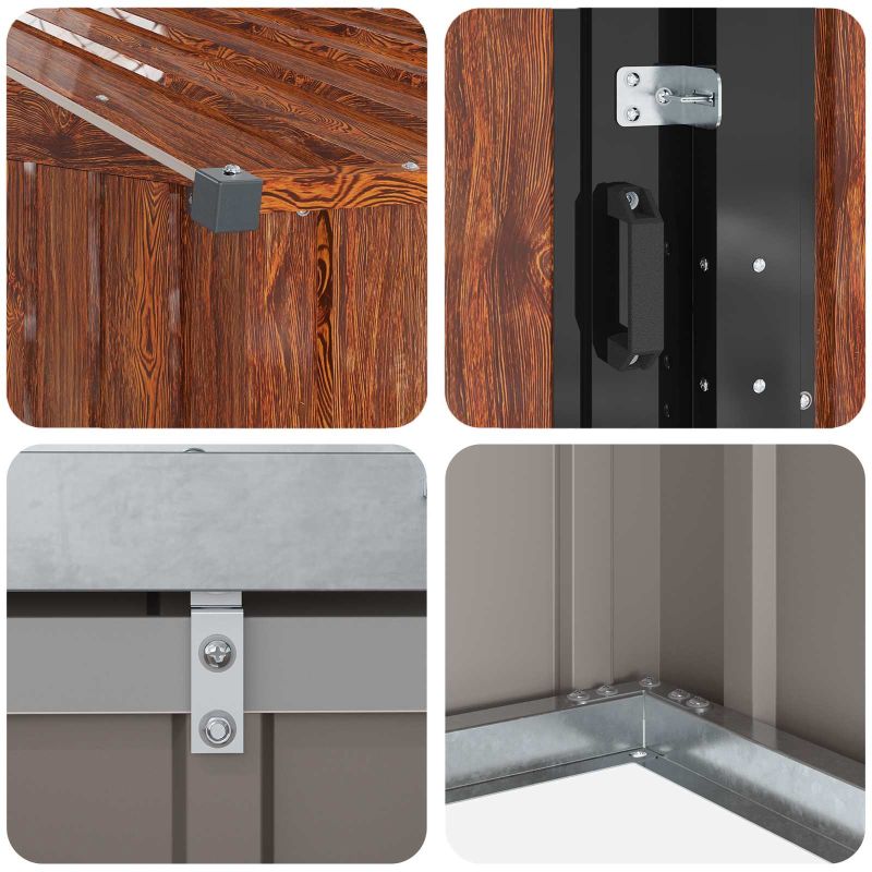 Dieses Metallgartenhaus steht für funktionales Design und modernen Style. Es bietet dir starke Aufbewahrungslösungen für alles, was du draußen brauchst. Die rechteckige Form und die klaren Linien harmonieren perfekt mit jedem Garten oder Balkon und sorgen dafür, dass du nicht nur deine Werkzeuge unterbringst, sondern auch das Aussehen deiner Terrasse aufwertest. Stahlkonstruktion: Dieses Gartenhaus aus Metall ist super robust und hält auch schlechtem Wetter stand. Es wird zum unverzichtbaren Teil deines Außenbereichs und sorgt dafür, dass du lange Freude daran hast, ohne auf Style verzichten zu müssen. Einfache Montage: Der Aufbau ist für zwei Personen gedacht und braucht nur einen Schraubendreher sowie die mitgelieferten Anleitungen. So kannst du schnell deine Aufbewahrungslösung selbst aufbauen, ohne Hilfe von Profis. Wetterfeste Konstruktion: Ideal für draußen, kann das Gartenhaus problemlos mit dem wechselhaften Sommerwetter umgehen. Es ist nicht nur praktisch, sondern sieht auch gut aus und schützt deine Gartenwerkzeuge optimal. Stilvolles Aussehen: Mit seinem modernen und schlichten Design gibt dieses Gartenhaus deinem Außenbereich einen echten Aufwert. Es sorgt dafür, dass deine Aufbewahrung nicht nur praktisch, sondern auch echt schick ist. Funktionaler Stauraum: Es bietet genügend Platz für all deine Gartenutensilien. So kannst du Werkzeuge, Töpfe und alles, was du für draußen brauchst, organisiert aufbewahren, ohne dass dein Garten überladen wirkt.