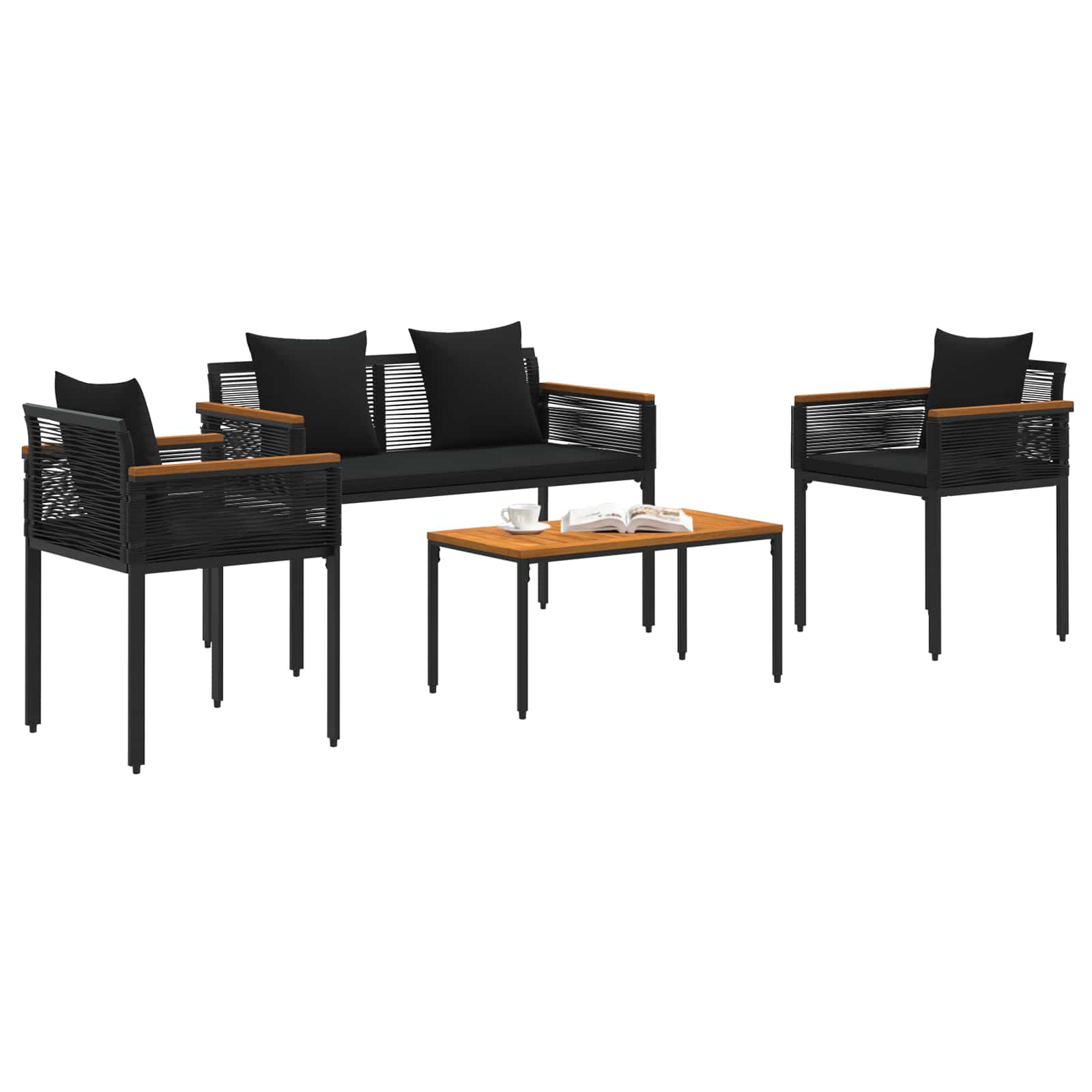 Dieses moderne Outdoor-Möbelset bringt Stil und Charme in jeden Garten oder auf jede Terrasse. Mit einem rustikalen Touch bietet es eine tolle Mischung aus schöner Optik und stabiler Bauweise und sorgt für eine einladende Atmosphäre. Egal ob man Freunde bewirtet oder einfach nur entspannt, es sieht einfach super aus und ist mega bequem! Die durchdachten Details, wie die geschmackvollen Armlehnen und der robuste Rahmen, bringen Funktionalität und Design in Einklang und machen deinen Außenbereich noch attraktiver. Hochwertige Materialien: Hergestellt aus PE-Rattan und pulverbeschichtetem Stahl, die wirklich langlebig und resistent gegen alle Wetterlagen sind. Diese Materialien vereinen das natürliche Aussehen von Rattan mit stabiler Bauweise! Qualitätskomponenten: Das Set kommt mit einem abnehmbaren Kissenbezug, der das Reinigen zum Kinderspiel macht. Der Kissenfüllung von leichtem Schaum und Faser sorgt für ultimativen Komfort. Und die quadratischen Beine in Kombination mit den ausgefallenen Armlehnen sehen einfach klasse aus! Ergonomische Merkmale: Mit nivellierbaren Füßen, die für Standfestigkeit sorgen, auch auf unebenen Flächen. So wird das Sitzen echt angenehm - ganz clever für den Außenbereich! Funktionale Nutzung: Ob im Garten oder auf der Terrasse, dieses Set ist die perfekte Kulisse für gesellige Runden oder einfach zum Entspannen. Der rustikale Look passt überall und bringt Charakter in dein Zuhause. Pflegehinweise: Um den schönen Zustand deines Sets zu erhalten, vermeide scharfe Chemikalien und wische es mit einem trockenen Tuch ab. Wenn es nicht in Gebrauch ist, zieh eine Abdeckplane drüber, um dem Wetter draußen nicht zu viel Gelegenheit zu geben. So bleibt dein Möbelset lange schön!