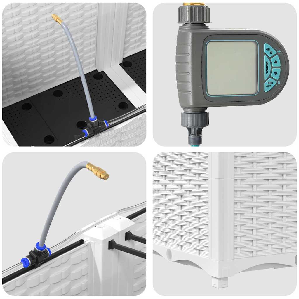 - Lieferumfang: 4 x Pflanzer, Bewässerungssystem