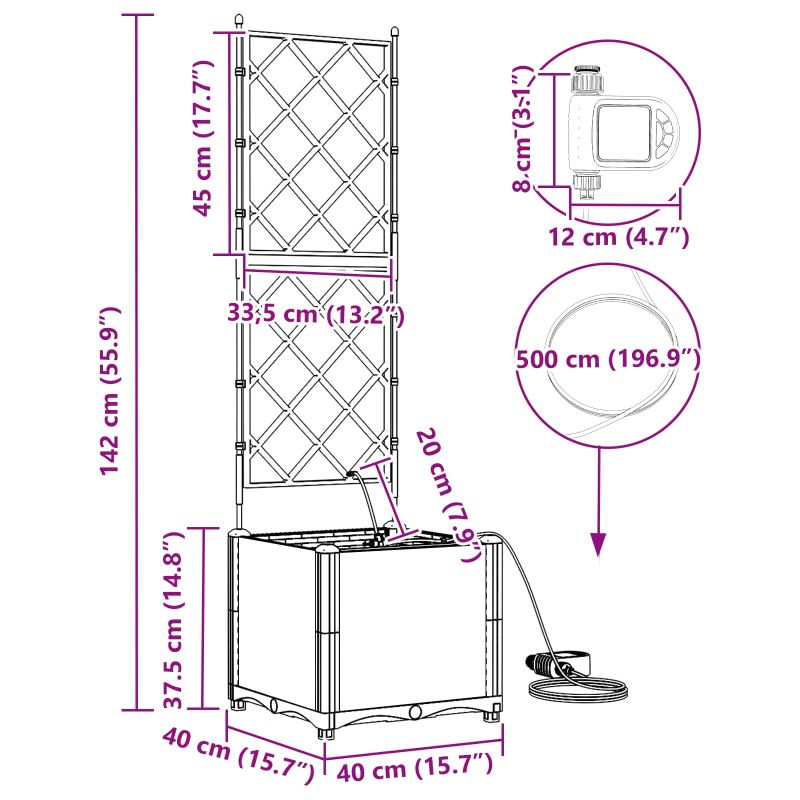 - Lieferumfang: 4 x Pflanzer, Bewässerungssystem