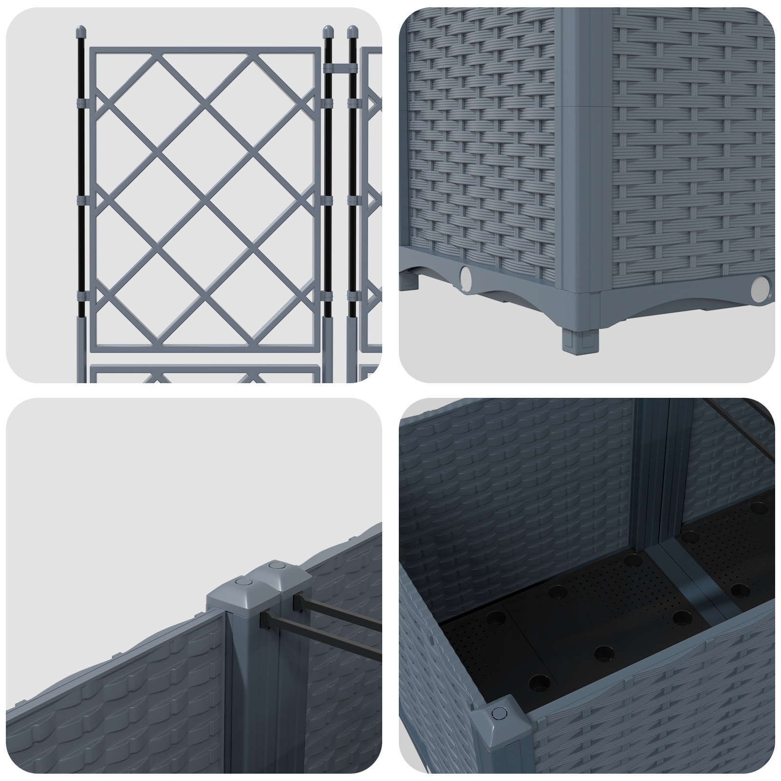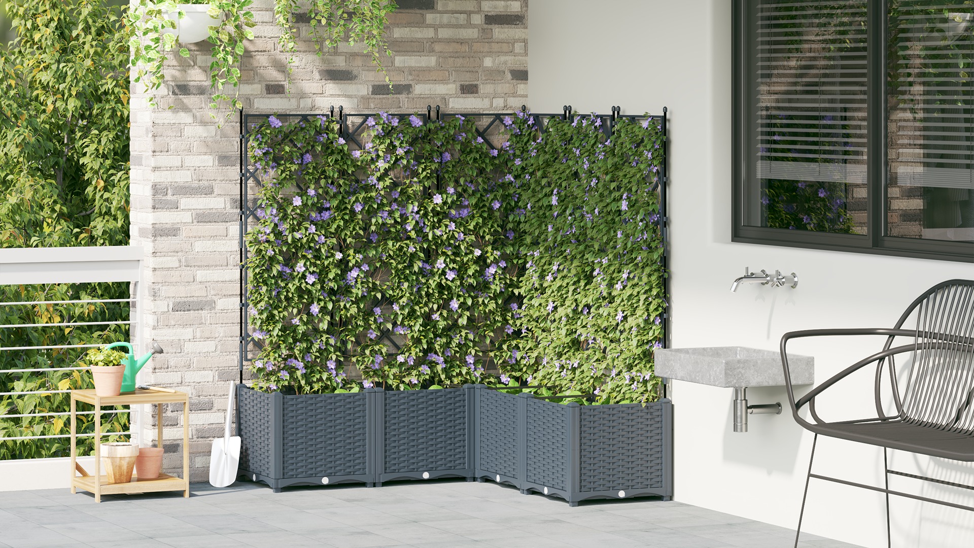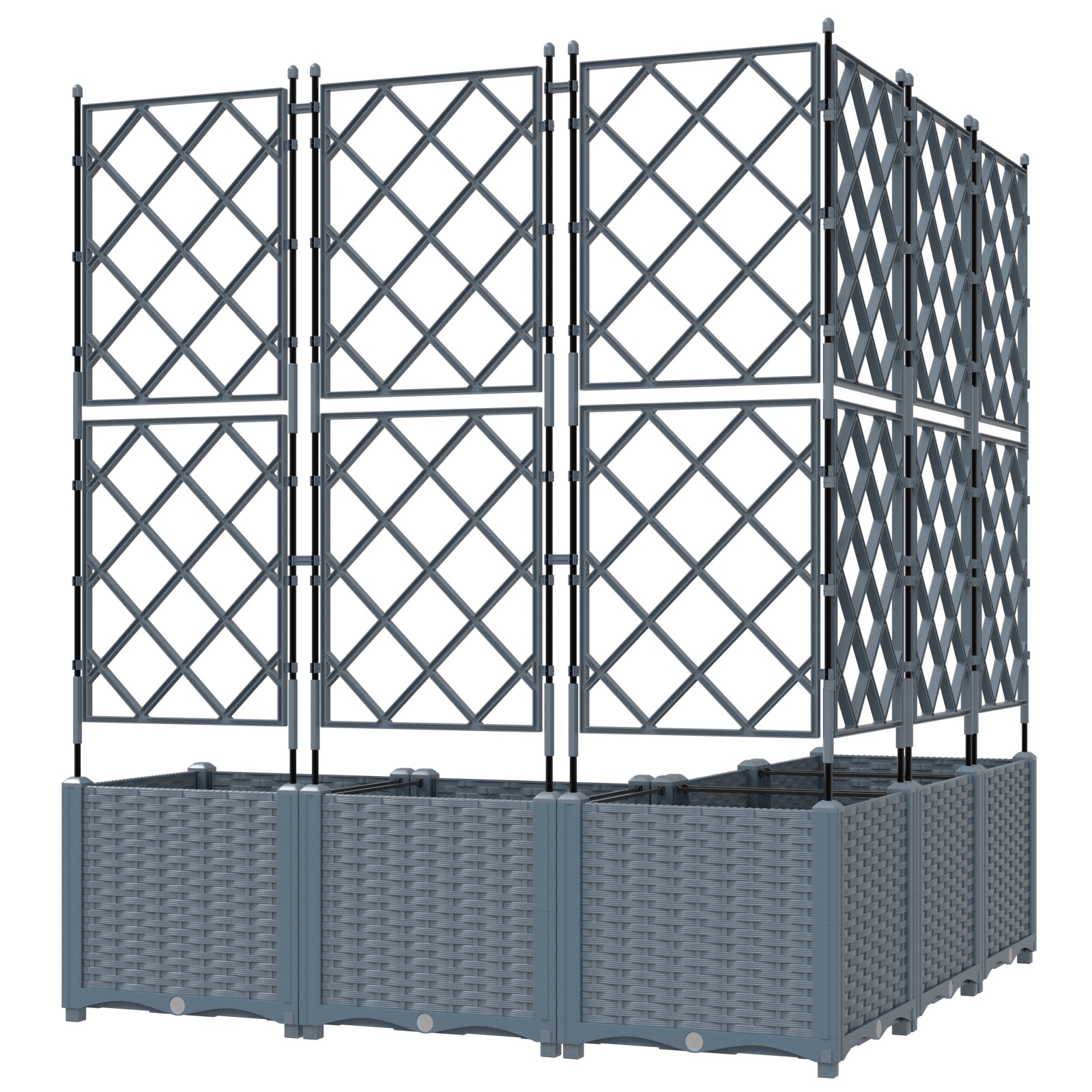 Dieser Gartenpflanzer mit Gitter ist eine schöne Ergänzung, sowohl für Gartenfans im Freien als auch für drinnen. Er ist aus robusten Materialien gefertigt, verbindet praktische Funktionen mit einem modernen Look und ist perfekt, um deine Terrasse, deinen Garten oder Wintergarten aufzufrischen. Mit einer Größe von 120 x 120 x 143 cm bietet er viel Platz für verschiedene Pflanzen und Blumen und ermutigt dich, kreativ mit deinem Garten umzugehen. Moderner Stil: Der Pflanzenständer hat eine glatte, matte Oberfläche. Er passt super zu verschiedenen Einrichtungsstilen und bringt frischen Wind in deinen Garten. Perfekt für Kletterpflanzen: Dieser Pflanzenständer ist echt flexibel und ideal, um Kletterpflanzen und Blumen toll zu präsentieren. Robustes und wasserdichtes Material: Aus hochwertigem Kunststoffen und verstärkt mit Metall, ist dieser Pflanzenständer super stabil und hält jedem Wetter stand, damit deine Pflanzen bestens geschützt sind. Höhenverstellbar: Die höhenverstellbare Funktion lässt dir die Freiheit, die passende Höhe für deine Pflanzen zu wählen, damit du ihn genau nach deinen Gartenbedürfnissen anpassen kannst. Einfache Wartung: Die Reinigung geht ganz einfach; mit einem feuchten Tuch abwischen, kein starkes Reinigungsmittel nötig, damit dein Pflanzenständer lange gut aussieht.