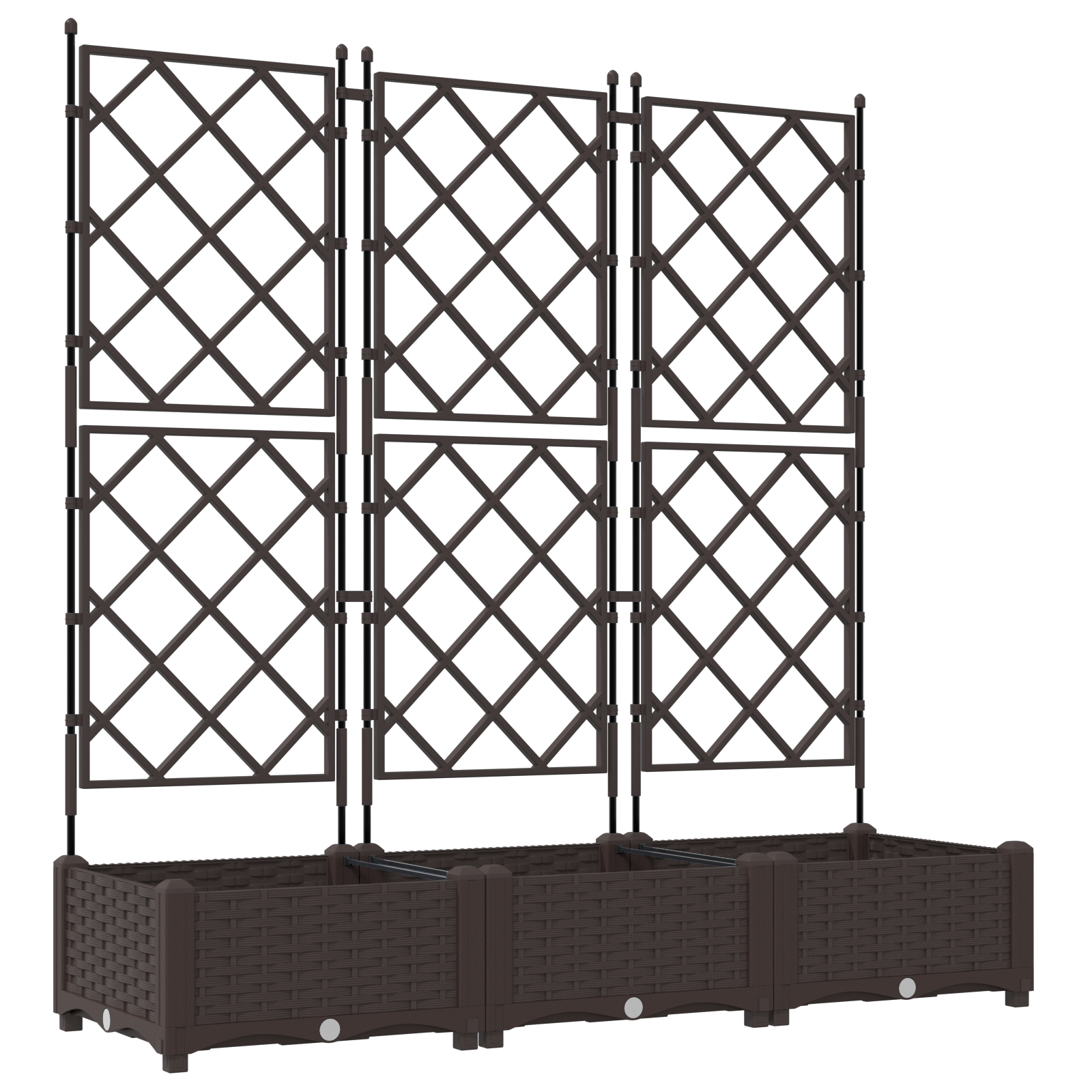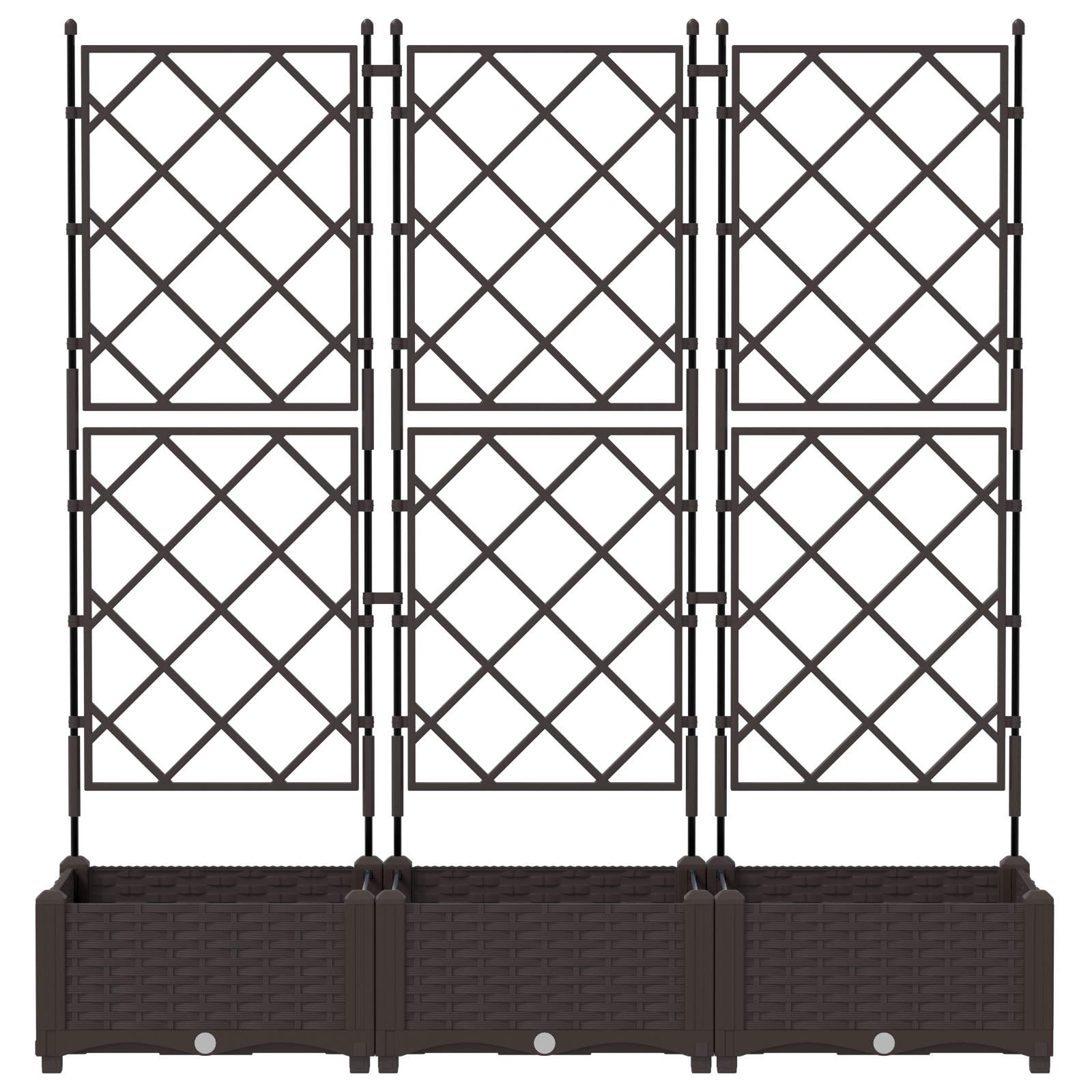 Dieser Gartenpflanzer mit Spalier ist eine stylische Ergänzung für alle, die gerne gärtnern, drinnen und draußen. Hergestellt aus hochwertigen, wetterfesten Materialien, bietet er sowohl Funktionalität als auch einen trendigen geflochtenen Look, der perfekt ist, um Terrassen, Gärten oder Balkone aufzufrischen. Mit seinen großzügigen Maßen von 120 x 40 x 125.5 cm hat dieser Pflanzer viel Platz für verschiedene Pflanzen und hilft dir, deine Gärtnerkünste zu zeigen. Modern Style: Das schicke Design des Pflanzers passt in jedes Dekor und gibt deinen Gartenräumen einen coolen Akzent. Indoor/Outdoor Use: Vielseitig einsetzbar, verbessert dieser Pflanzer deine Gartenarbeit überall, vom sonnigen Balkon bis zum stylischen Wohnzimmer. Durable Composition: Aus starkem Harz, das für die Ewigkeit gebaut ist, ist dieser Pflanzer UV-beständig und wasserdicht, damit deine Pflanzen geschützt sind. Privacy and Decoration: Die Spalierstruktur ist perfekt für vertikales Gärtnern und bringt einen dekorativen Akzent, für ein bisschen Privatsphäre oder einfach fürs Aussehen. Easy Maintenance: Ein bisschen warmes Wasser und ein weiches Tuch reichen, um deinen Pflanzer frisch zu halten; scharfe Chemikalien vermeiden, damit er lange hält.