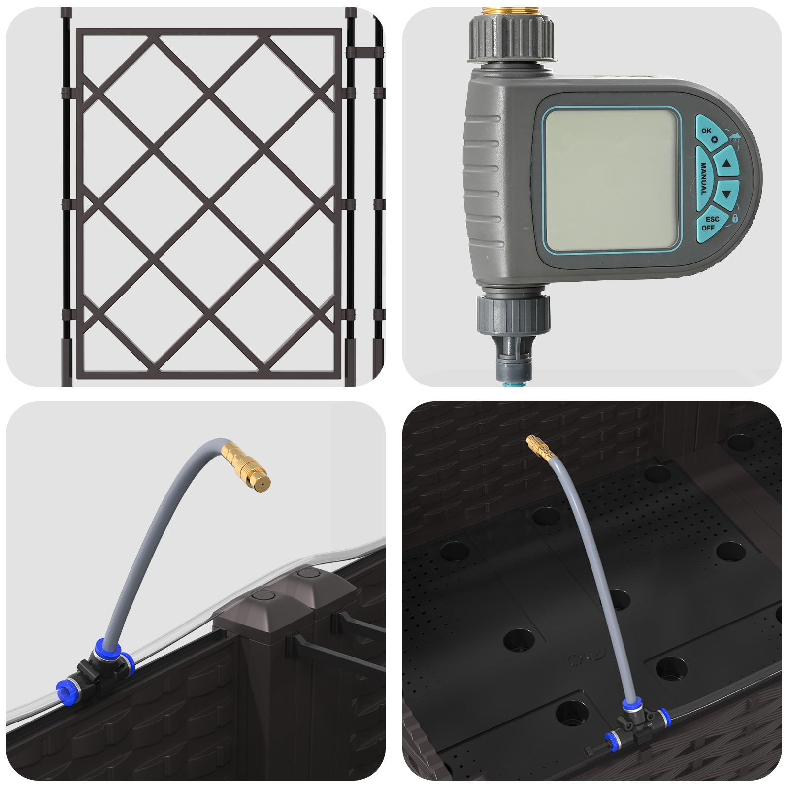 - Lieferumfang: Pflanzer mit Spalier und Bewässerungssystem
