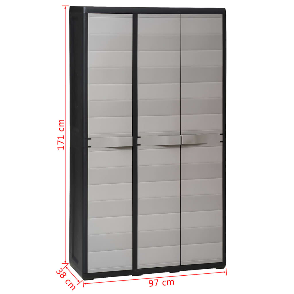 Unser hochwertiger Schrank eignet sich ideal zum Organisieren und Aufbewahren deiner Haushaltssachen, Werkzeuge oder anderer Gegenstände im Garten oder auf der Terrasse. Mit seinem zeitlosen Design fügt sich der Schrank harmonisch in jede Einrichtung ein. Dieser TÜV-GS-zertifizierte Schrank besteht aus robustem, langlebigem Polypropylen (PP). Der geräumige Schrank verfügt über belüftete Böden, die sich einstellen lassen, sodass Gegenstände in verschiedenen Größen darin Platz finden. Der Gartenschrank kann mit einem Vorhängeschloss für zusätzliche Sicherheit abgeschlossen werden (das Schloss ist nicht im Lieferumfang enthalten). Dieser Outdoor-Schrank lässt sich auch einfach reinigen. Mit seinem kompakten Design nutzt der Gartenschrank begrenzten Platz optimal aus. Der Zusammenbau ist kinderleicht.