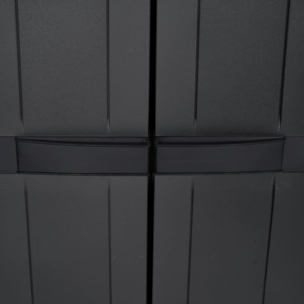 Dieser Gartenschrank eignet sich ideal, um Haushaltssachen, Werkzeuge oder andere Gegenstände ordentlich aufzubewahren. Langlebiges Material: Polypropylen (PP) ist ein beliebter Kunststoff, der bei der Herstellung von Gartenmöbeln sehr häufig verwendet wird. Es ist leicht, robust und stoßfest. Zudem ist dieser Gartenschrank auch witterungsbeständig und pflegeleicht. Viel Stauraum: Dieser Geräteschrank bietet reichlich Stauraum, um Gartenutensilien, Werkzeuge oder andere Sachen ordentlich aufzubewahren. Dank des Einlegebodens finden Gegenstände unterschiedlicher Größe darin Platz. Abschließbar: Der Gartenschrank lässt sich bei Bedarf abschließen, um zusätzliche Sicherheit zu bieten (Schloss ist nicht im Lieferumfang enthalten). Kompaktes Design: Mit seinem kompakten Design nutzt dieser Gartenschrank begrenzten Platz optimal aus und ist daher eine perfekte Wahl für Gärten, Balkone und Terrassen. Gut zu wissen:Wir empfehlen dir, deine Gartenmöbel mit einer wasserdichten Hülle zu schützen, um lange Zeit eine ansprechende Optik aufzuweisen. Achtung: Um ein Umkippen zu vermeiden, sollte dieses Produkt mit der mitgelieferten Wandhalterung gesichert werden.