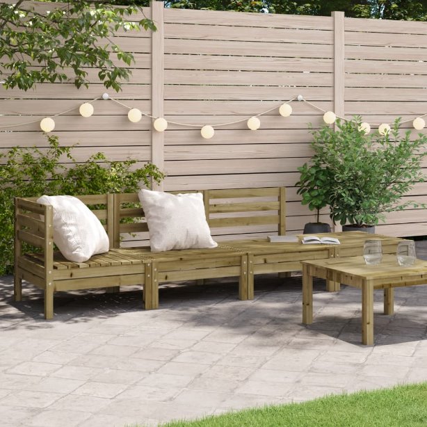 Dieses 4-Sitzer-Gartensofa aus Holz ist eine großartige Ergänzung zu deinem Garten, Innenhof bzw. deiner Terrasse, um mit Familie und Freunden zu plaudern oder einfach nur das Wetter zu genießen. Imprägniertes Holz: Massives Kiefernholz ist ein wunderschönes Naturmaterial. Kiefernholz weist eine gerade Maserung auf und die Aststellen verleihen dem Material seine charakteristische, rustikale Optik. Die Imprägnierung ist ein Konservierungsprozess, der unter Verwendung von Autoklaven durchgeführt wird. Die Druckbehandlung erhöht die Widerstandskraft gegen Verrottung und Witterung.Bequemes Sitzerlebnis: Die Rückenlehne sorgt für zusätzlichen Sitzkomfort auf dem Gartensofa.Latten-Design: Das Latten-Design verhindert effektiv die Ansammlung von Wasser, sodass die Sitzfläche trocken bleibt und Holzfäule verhindert wird.Modulares Design: Dieses modulare Gartensofa aus Holz ist völlig flexibel und leicht umzustellen, um sich an jede Umgebung anzupassen. Du kannst das Modulsofa mit anderen modularen Sofaelementen kombinieren, die im Dropdown-Menü zur Auswahl stehen, um dein persönliches Outdoor-Lounge-Set nach Belieben zu erstellen! Gut zu wissen:Wir empfehlen dir, deine Gartenmöbel mit einer wasserdichten Hülle zu schützen, um lange Zeit eine ansprechende Optik aufzuweisen.