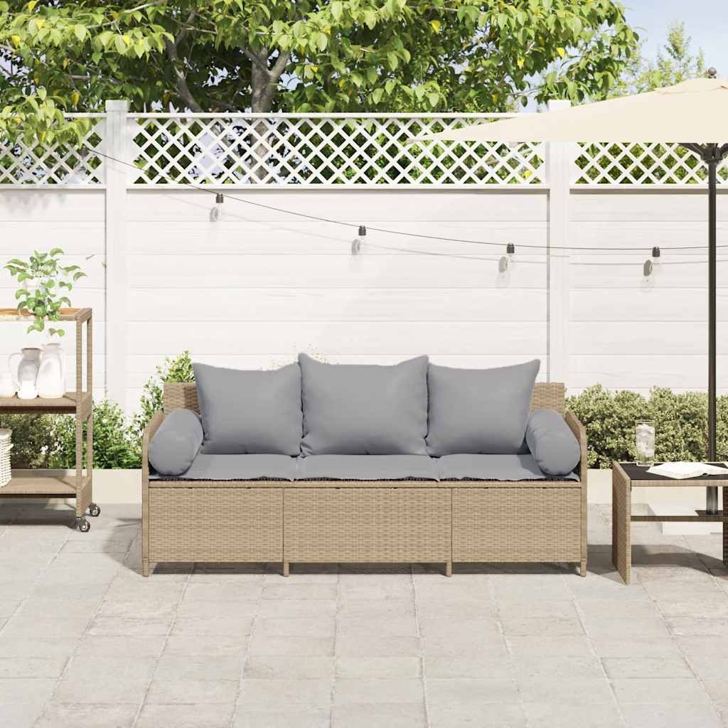 Entspanne dich und genieße die Natur auf diesem bequemen Gartensofa! Langlebiges Material: PE-Rattan, auch als Poly Rattan bekannt, ist ein robustes, pflegeleichtes synthetisches Material, das die Optik von natürlichem Rattan aufweist. Es kennzeichnet sich durch ein geringes Eigengewicht und lässt sich einfach reinigen. Aufgrund seiner Haltbarkeit und Witterungsbeständigkeit wird es häufig bei der Herstellung von Gartenmöbeln verwendet.Bequemes Sitzerlebnis: Dieses Gartensofa wird samt dick gepolsterten Kissen geliefert, um höchsten Sitzkomfort zu bieten.Abnehmbarer und waschbarer Bezug: Die Sitzkissen verfügen über abnehmbare Bezüge, die sich ganz einfach waschen und reinigen lassen. Dank der Klappen an der Rückseite können die Rückenkissen ganz einfach an den Rückenlehnen befestigt werden.Robuster und stabiler Rahmen: Dank des pulverbeschichteten Stahlrahmens ist das Möbelstück robust, stabil und für den täglichen Einsatz im Außenbereich geeignet. Gut zu wissen:Wir empfehlen dir, deine Gartenmöbel mit einer wasserdichten Hülle zu schützen, um lange Zeit eine ansprechende Optik aufzuweisen.