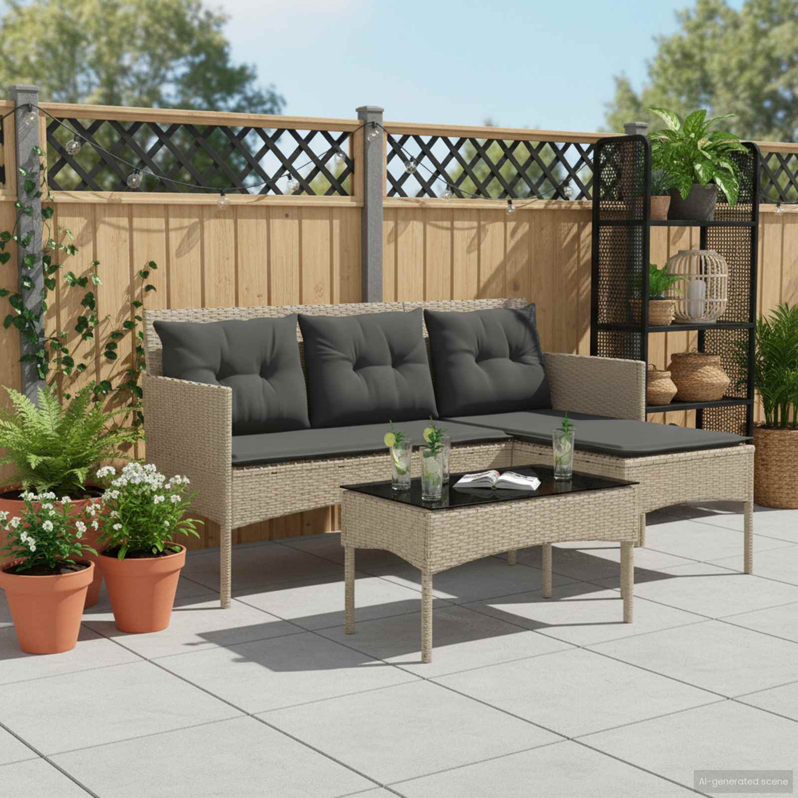 Gartensofa-set mit Kissen 2 pcs Poly-Rattan