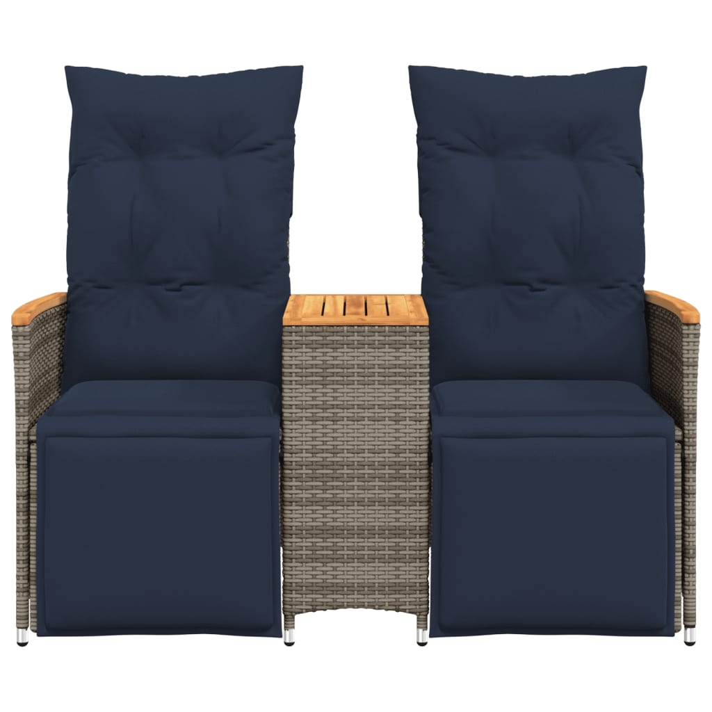 Entspannen Sie sich und genießen Sie die Natur in diesem bequemen Gartensofa! Langlebiges Material: PE-Rattan, auch bekannt als Polyrattan, ist ein robustes, pflegeleichtes Kunststoffmaterial, das natürlichem Rattan ähnelt. Es ist leicht, einfach zu reinigen und wird aufgrund seiner Langlebigkeit und Wetterbeständigkeit häufig für Gartenmöbel verwendet.Praktischer Mitteltisch: Dieses Gartenmöbel verfügt über einen integrierten Mitteltisch, an dem Sie Ihre wichtigsten Utensilien bequem griffbereit aufbewahren können.Verstellbare Rückenlehne und Fußstütze: Dieser Gartensitz verfügt über einen Griff. Sie können die Rückenlehne und die Fußstütze durch Ziehen des Griffs in jede beliebige Position bringen und sie schnell wieder in ihre Ausgangsposition zurückbringen.Bequemes Sitzerlebnis: Diese Gartenmöbel bieten mit ihren dick gepolsterten Kissen ein bequemes Sitzerlebnis.Abnehmbarer und waschbarer Bezug: Diese Sitzkissen verfügen über abnehmbare Bezüge für einfaches Waschen und Pflegen. Gut zu wissen:Damit Ihre Gartenmöbel schön bleiben, empfehlen wir Ihnen, sie mit einer wasserdichten Abdeckung zu schützen.