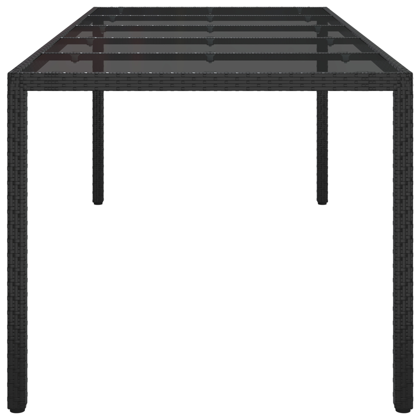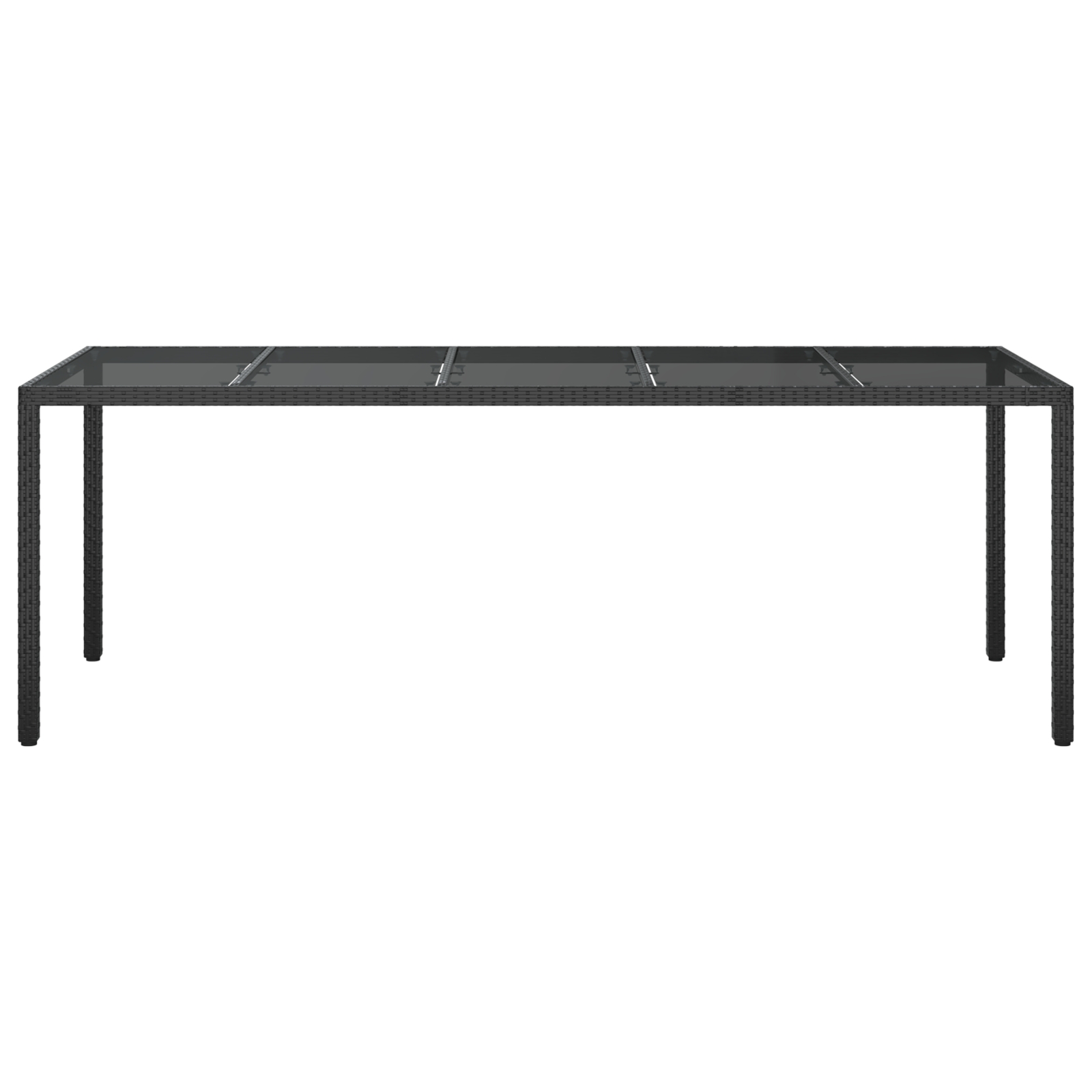 Dieser Gartenspeisetisch bringt frischen Wind in deinen Außenbereich. Perfekt für Gartenpartys oder entspannte Essen auf der Terrasse. Das moderne Design und die rechteckige Form bieten viel Platz für gemeinsames Essen und gesellige Abende mit Freunden oder ein ruhiges Dinner unter freiem Himmel. Robuste Konstruktion: Stabiler pulverbeschichteter Stahlrahmen, der Wetterbedingungen standhält und Stabilität bietet. Die soliden Poly-Rattan Beine sorgen für zusätzliche Zuverlässigkeit. Einfache Reinigung: Die klare Einscheibensicherheitsglas-Oberfläche lässt sich einfach abwischen, damit dein Tisch lange schick aussieht. Ein feuchtes Tuch genügt. Mobilität: Leicht und einfach zu transportieren, kann dieser Tisch für Familienessen oder entspannte Zusammenkünfte überall hingestellt werden. Viel Platz: Mit 250 cm Länge und 100 cm Breite bietet er Platz für bis zu 10 Personen – ideal für große Zusammenkünfte im Freien. Wetterfest: Hergestellt aus UV-beständigen Materialien, bleibt er auch in der prallen Sonne lange schön.
