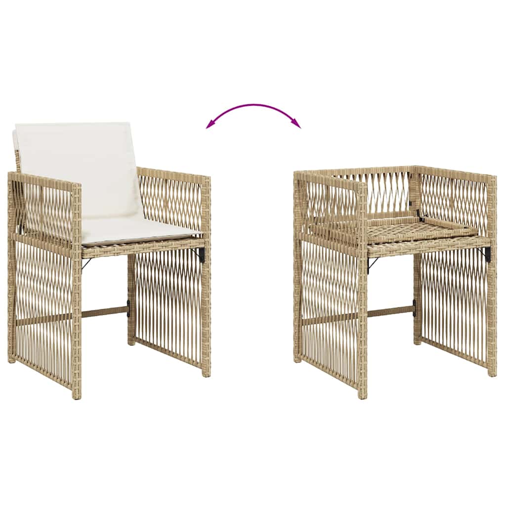 Entspanne dich und genieße die Natur in diesen bequemen Gartenstühlen! Langlebiges Material: PE-Rattan, auch als Poly Rattan bekannt, ist ein robustes, pflegeleichtes synthetisches Material, das die Optik von natürlichem Rattan aufweist. Es kennzeichnet sich durch ein geringes Eigengewicht und lässt sich einfach reinigen. Aufgrund seiner Haltbarkeit und Witterungsbeständigkeit wird es häufig bei der Herstellung von Gartenmöbeln verwendet.Bequemes Sitzerlebnis: Dieser Gartensessel mit dick gepolsterten Kissen bietet ein angenehmes Sitzgefühl.Klappbare Rückenlehne: Dank der klappbaren Rückenlehnen lassen sich diese Stühle platzsparend aufbewahren.Abnehmbarer und waschbarer Bezug: Die Kissen verfügen über abnehmbare Bezüge, die sich ganz einfach waschen und reinigen lassen. Dank der Klappen an der Rückseite können die Sitzkissen ganz einfach an den Stühlen befestigt werden.Robuster und stabiler Rahmen: Dank des pulverbeschichteten Stahlrahmens ist das Outdoor-Möbel robust, stabil und für den täglichen Einsatz im Außenbereich geeignet. Gut zu wissen:Wir empfehlen dir, deine Gartenmöbel mit einer wasserdichten Hülle zu schützen, um lange Zeit eine ansprechende Optik aufzuweisen.
