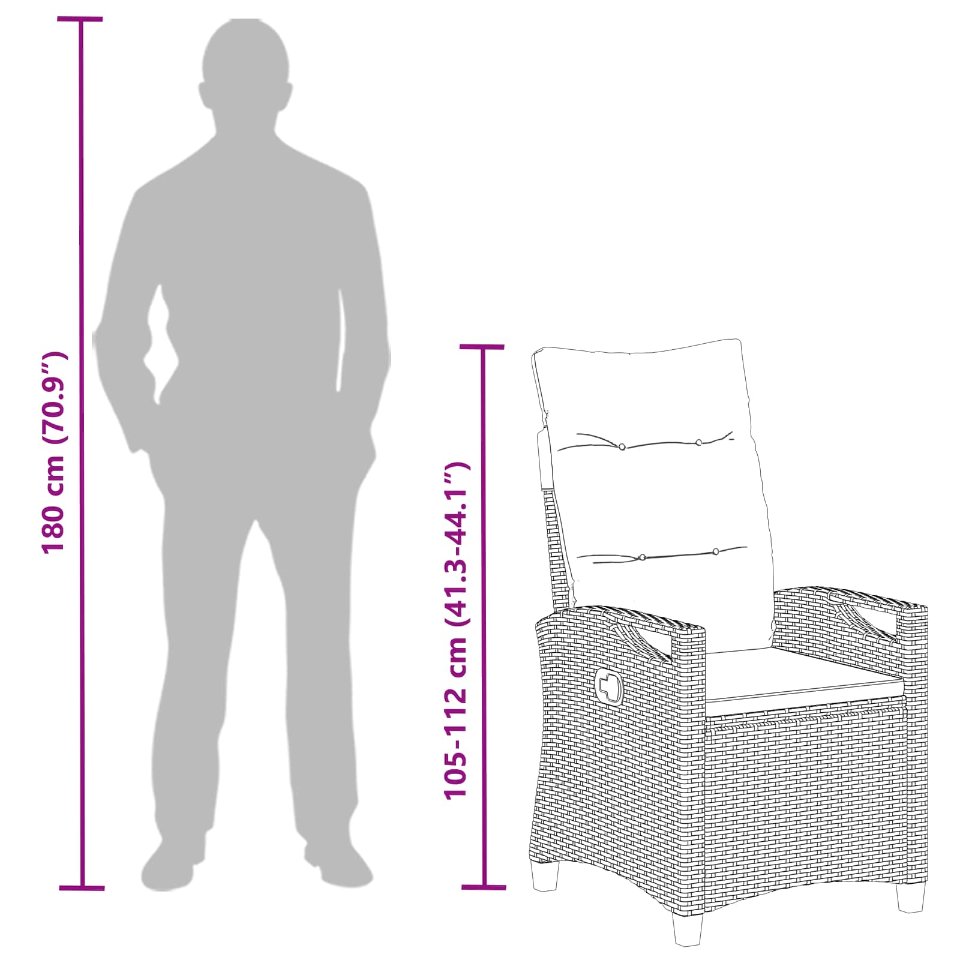 Dieser reclining Gartenstuhl bietet modernes Design mit einem schlichten Look für deine Außenbereiche. Seine elegante Form passt super in jeden Garten oder auf jede Terrasse und ist perfekt für alle, die Stil lieben. Die verstellbare Rückenlehne sorgt für maximalen Komfort und lässt dich immer genau den richtigen Winkel finden – egal ob du entspannen oder dich mit Freunden treffen möchtest. Verstellbare Rückenlehne: Der Gartenstuhl hat eine praktische Rückenlehne, die sich leicht an deine Komfortbedürfnisse anpasst. Egal, ob du einfach nur chillen oder an einem Outdoor-Event teilnehmen möchtest, diese Funktion sorgt dafür, dass du immer die beste Position findest. Ideal, um gaaanz schnell zwischen Sitzen und Liegen zu wechseln. Hochwertige Materialien: Aus strapazierfähigem Polyester gefertigt und mit einem stabilen Stahlrahmen verstärkt, ist der Stuhl sehr langlebig. Diese Premium Materialien sorgen dafür, dass er auch bei täglichem Gebrauch klasse aussieht und perfekt für draußen geeignet ist. Moderner Stil: Mit seinem minimalistischen Design ist dieser Stuhl eine echte Bereicherung für deinen Garten. Klare Linien und funktionale Schönheit machen ihn zu einer stilvollen Ergänzung für jedes Außenbereich. Der dezente Charme fügt sich super in unterschiedliche Dekors ein. Einfache Pflege: Auch die Pflege des Stuhls ist kinderleicht. Ein feuchtes Tuch drüber wischen genügt, um Flecken oder Schmutz zu entfernen und sein elegantes Aussehen das ganze Jahr über zu bewahren. Umfassender Komfort: Dank der Schaumfüllung im Kissen erlebst du außergewöhnlichen Sitzkomfort, selbst nach stundenlangem Relaxen. Ergonomische Armlehnen und die höhenverstellbare Funktion steigern zusätzlich das Wohlfühl-Feeling, ohne dass du auf hochwertiges Design verzichten musst.