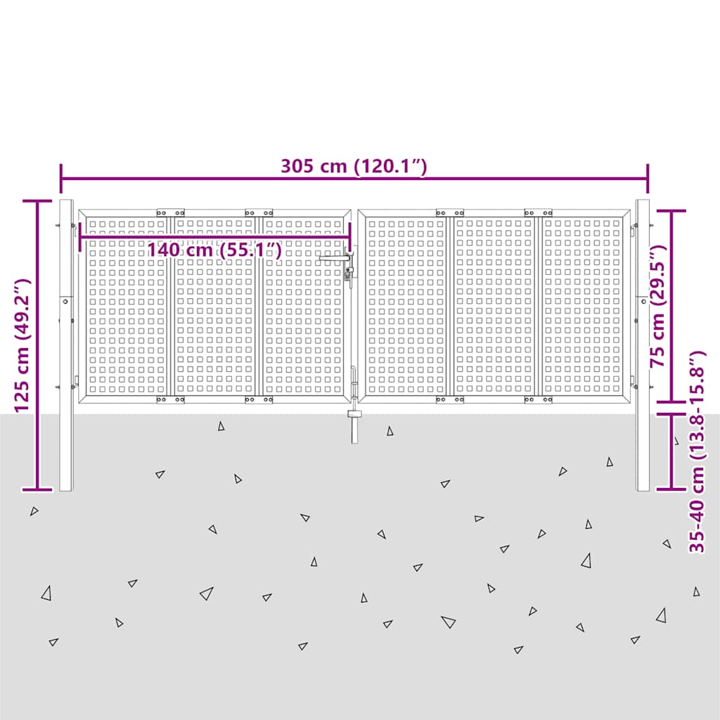 Gartentor Anthrazit 300x75 cm Stahl