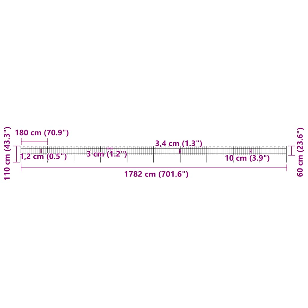 Gartenzaun mit Rundbogen Stahl 1781,5 x 60 cm Schwarz