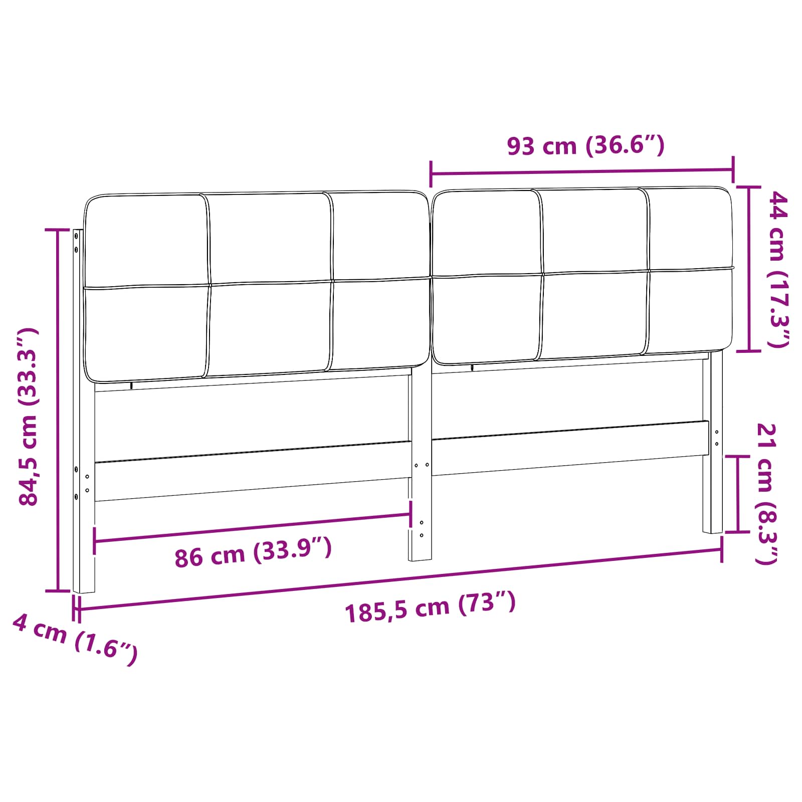 - Gesamtabmessungen: 185,5 x 12 x 84,5 cm (L x B x H)