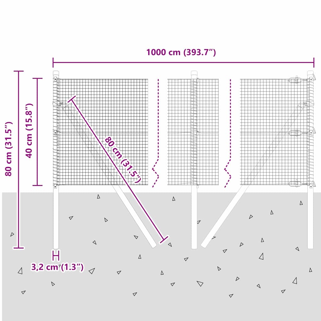 Geschweißter Drahtzaun mit 7 Pfosten 0.4x10 m verzinkter Stahl