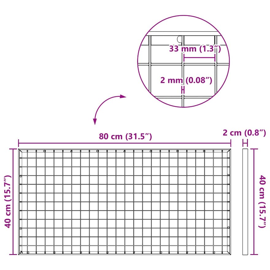 Dieses Metallgitter im Industrie-Style ist extrem vielseitig und eignet sich für Sanitärinstallationen sowohl drinnen als auch draußen. Hergestellt aus feuerverzinktem Stahl, bietet es eine hervorragende Stabilität und Haltbarkeit, ideal zum Abdecken von Plattformen oder zur Unterstützung der Luftzirkulation. Sein schickes silbernes Design passt perfekt in urbane Lofts oder in von Lagerhäusern inspirierte Einrichtungen und sorgt für einen funktionalen und stylishen Look in Gärten, auf Terrassen und an anderen Orten, wo eine zuverlässige Drainage nötig ist. Robuste Stahlkonstruktion Dieses Gitter ist aus feuerverzinktem Stahl gemacht, was es besonders langlebig macht. Das Material hält auch bei intensiver Nutzung stand und ist die zuverlässige Wahl für Anwendungen, die sowohl funktional als auch strapazierfähig sind. Korrosionsbeständigkeit Entwickelt, um extremen Bedingungen zu widerstehen, bleibt die Struktur auch unter härtesten Bedingungen stabil. Das korrosionsbeständige Material sorgt dafür, dass es länger wie neu aussieht und bietet eine nachhaltige Performance ohne Verschleiß. Effizientes Design Mit einer Maschenweite von 30/30 mm sorgt das Gitter für eine schnelle und effektive Entwässerung. Egal, wo es eingesetzt wird, es leitet Flüssigkeiten schnell ab und verhindert Pfützen oder Schäden. Vielseitige Anwendung Perfekt als Plattformabdeckung oder zur Luftzirkulation, erfüllt dieses Produkt mehrere Funktionen. Es fügt sich nahtlos in unterschiedliche Umgebungen ein, von Gärten bis hin zu Terrassen, und bietet Flexibilität für verschiedene Nutzerbedürfnisse. Einfache Reinigung Wisch einfach mit einem feuchten Tuch drüber und das Gitter bleibt in top Zustand. Diese einfache Pflege hilft dabei, den Glanz und die Effizienz über Jahre hinweg zu erhalten, ohne dass große Wartungsaufwendung nötig sind.