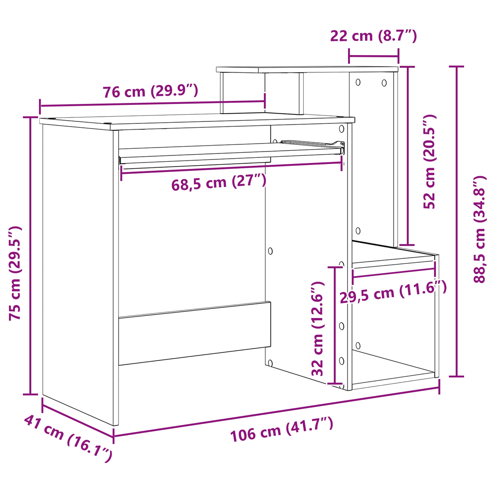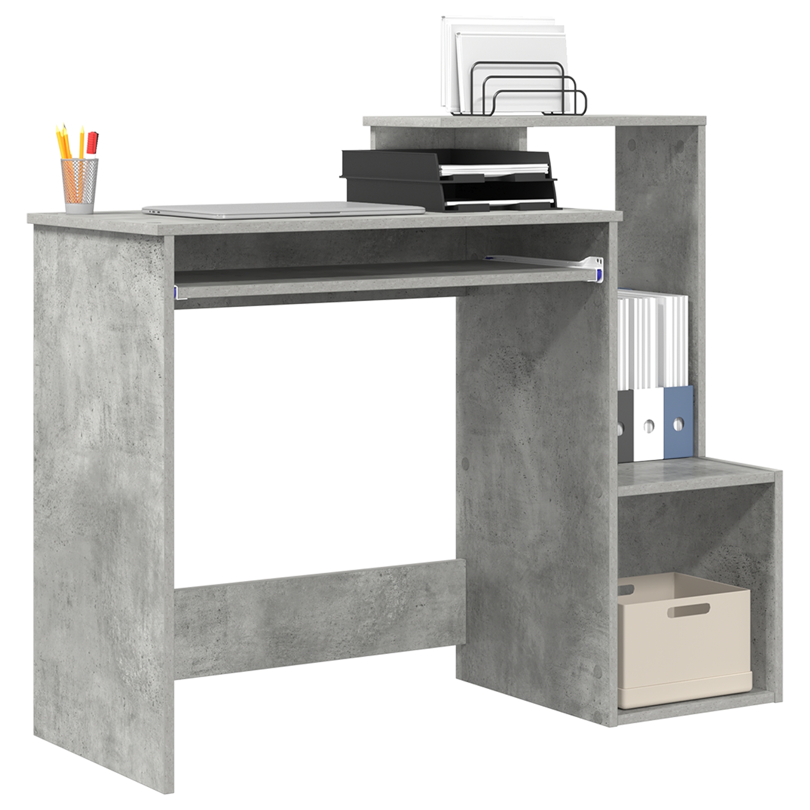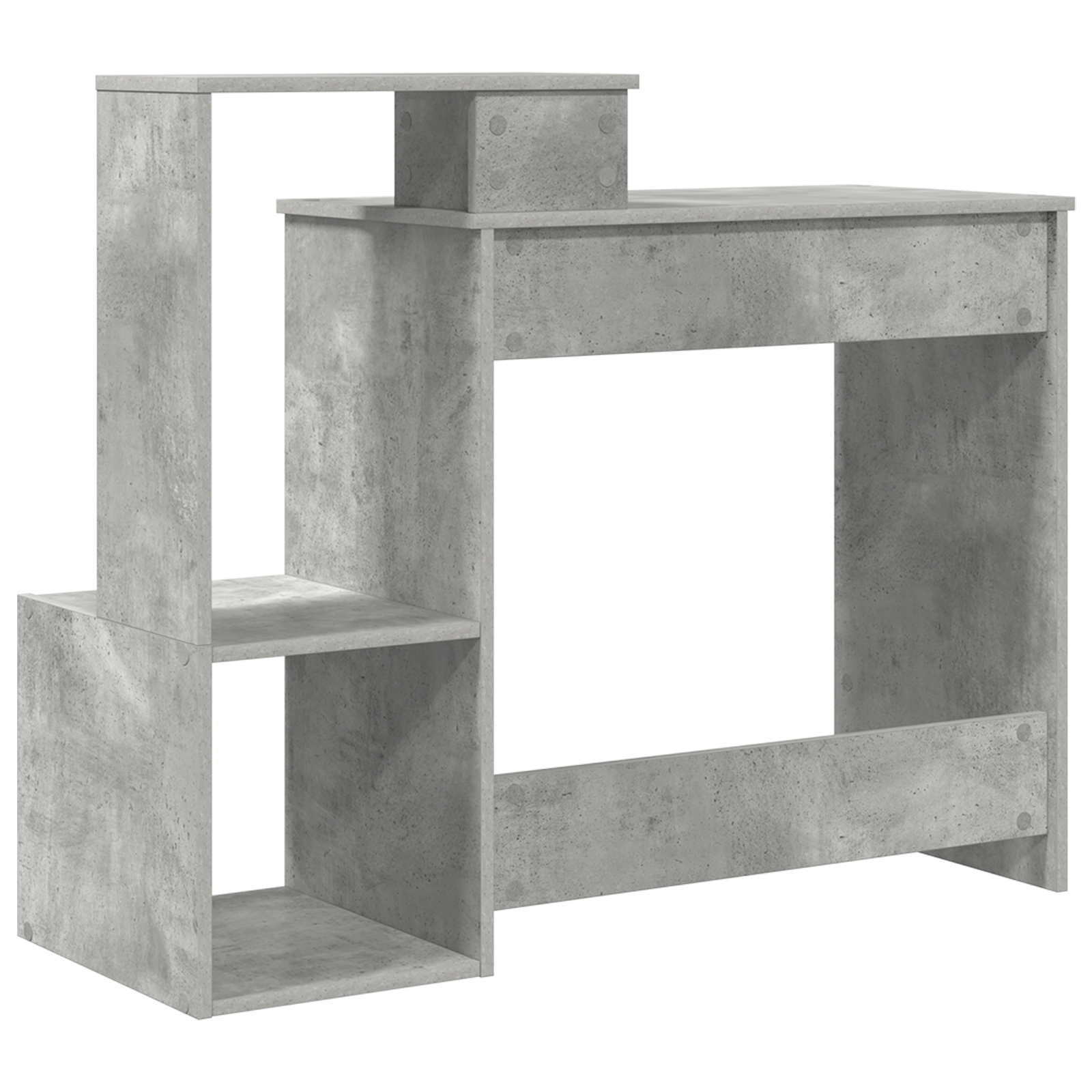 Dieser Computertisch ist ein praktisches Möbelstück, das deinen Arbeitsbereich aufpeppt und dabei gut aussieht. Er hat einen industriellen Stil, der perfekt in Heimbüros oder Lernbereichen passt und viel Platz für Laptops, Bücher und andere wichtige Sachen bietet. Der Tisch hat eine normale Schublade und zwei Regale, perfekt, um alles organisiert zu halten und einen ordentlichen Arbeitsplatz zu schaffen. Die matte Oberfläche betont den schicken Look und reduziert Blendung, was für angenehmes Arbeiten oder Lernen sorgt. Mit seinem großzügigen Design bietet er viel Platz, ideal für Schularbeiten oder berufliche Projekte. Sein kompaktes Format macht ihn ideal für kleinere Räume und ermöglicht praktische Aufstellungen, ohne dass es zu eng wird. Hergestellt aus solidem MDF, ist dieser Tisch langlebig und leicht, was das Umstellen einfach macht.