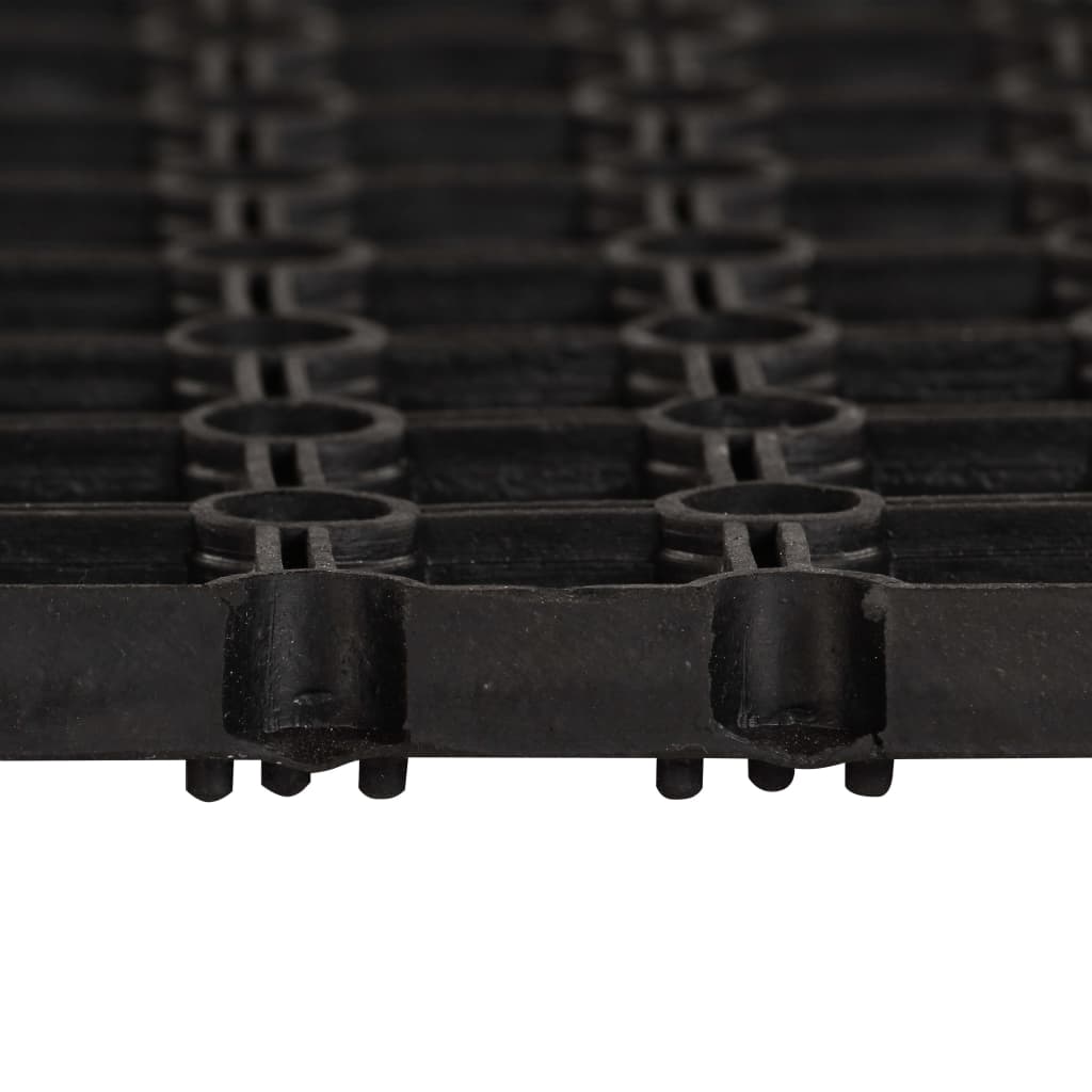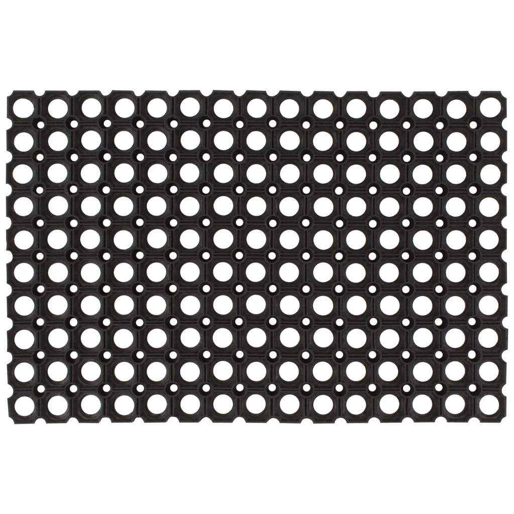 Die Gummi-Ringmatten können vielseitig als Bodenbeläge im Innen- und Außenbereich verwendet werden. Die Gummimatten können als Fußmatten oder Schmutzfangmatten verwendet werden, aber auch als Bodenbelag auf der Terrasse, in der Garage oder Werkstatt, im Stall oder Auto usw. Mittels Verbindern (nicht im Lieferumfang enthalten) kannst du eine Ringloch-Gummimatte mit einer anderen einfach verbinden, um die gewünschten Form oder Größe zu erhalten. Aus 100% Kautschuk gefertigt, sind die Ringgummimatten witterungsbeständig, rutschfest und leicht zu reinigen. Die Lieferung beinhaltet 5 Matten.