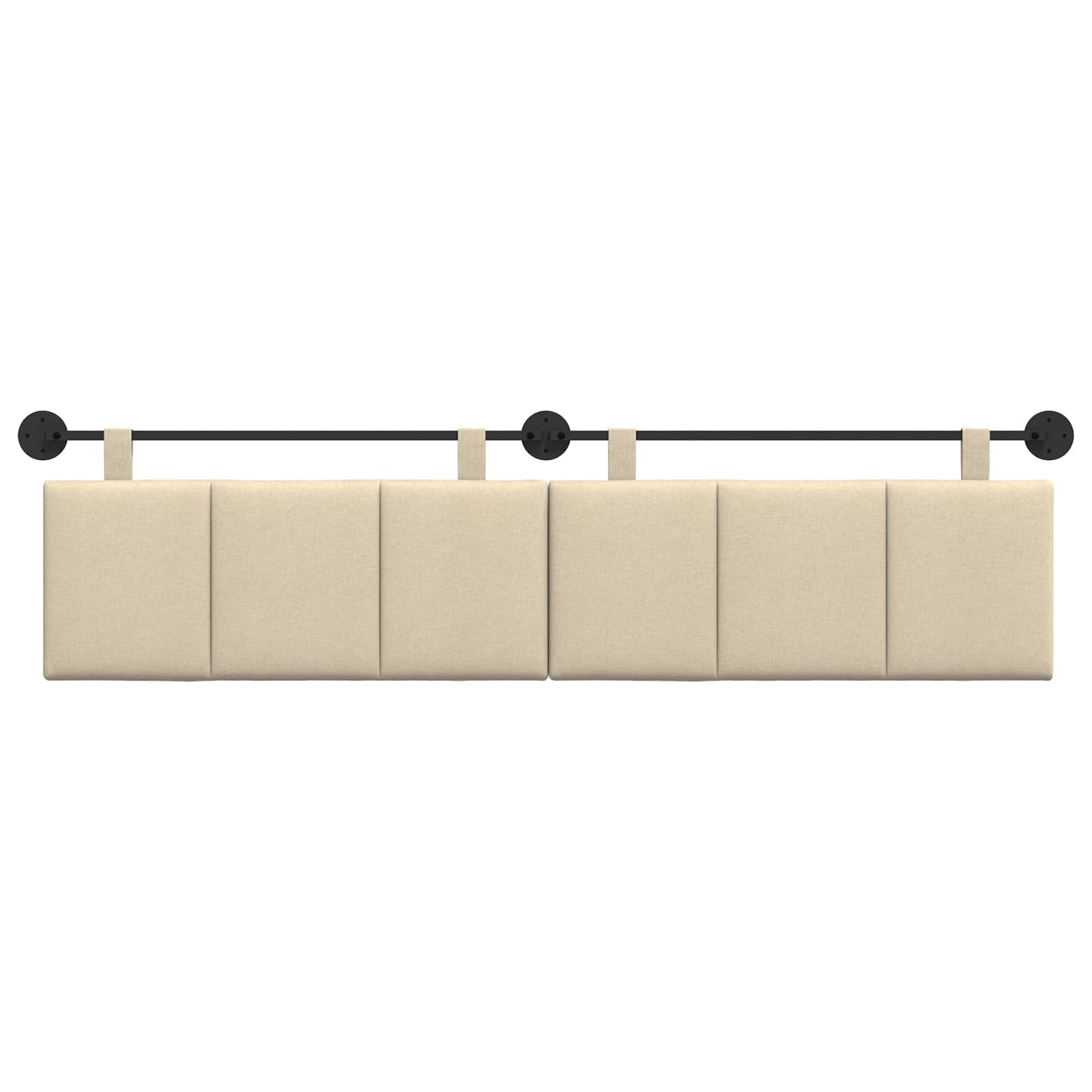 Dieses tolle Hängestück bringt moderne Einfachheit und Funktionalität zusammen. Mit seinem schlichten, rechteckigen Design und den eleganten Streifen peppt es jedes Schlafzimmer auf. Die weiche, gepolsterte Oberfläche lädt zum Entspannen ein – perfekt, um gemütlich zu sitzen oder zu lesen. Ideal für alle, die schicke Eleganz ohne viel Schnickschnack mögen. Es fügt sich harmonisch in verschiedene Inneneinrichtungen ein und bringt deine Schlafumgebung zum Strahlen. Elegante Stoffoberfläche Hergestellt aus 100% Polyester, bietet dieses Kopfteil atmungsaktiven Stoff für dauerhaften Komfort. Der Stoff hält lange und bleibt weich – perfekt für ein schickes Schlafzimmer. Integriertes Montagesystem Mit einer stabilen Metallleiste und Montagematerial für einfache Installation an der Wand. So sorgt es für einen sauberen, modernen Look, der den Platz optimal nutzt. Verstellbare Gurte Die abnehmbaren Gurte geben dir die Freiheit, das Kopfteil flexibel zu positionieren, je nach deinem Raum und deinen Wünschen. Weiche Polsterung Der Schaumkern sorgt für einen bequemen Sitz, perfekt zum Entspannen und Lesen. Damit unterstützt es ergonomisches Wohlbefinden. Einfacher Pflegeaufwand Zum Saubermachen reicht ein trockenes Tuch. Das macht die Pflege kinderleicht, ohne aggressive Reinigungsmittel einsetzen zu müssen.