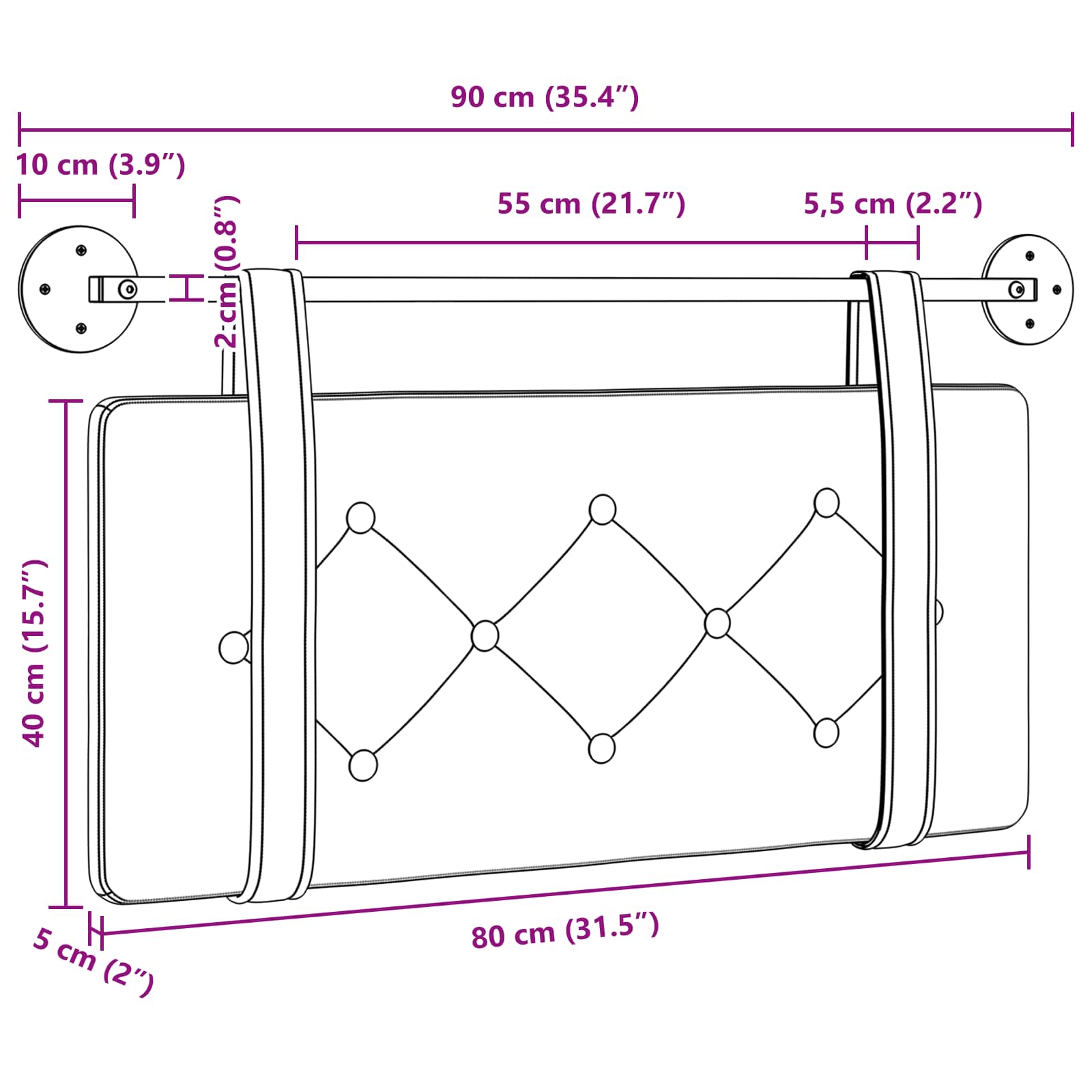 - Gesamtabmessungen: 90 x 55 x 5 cm (B x T x H)