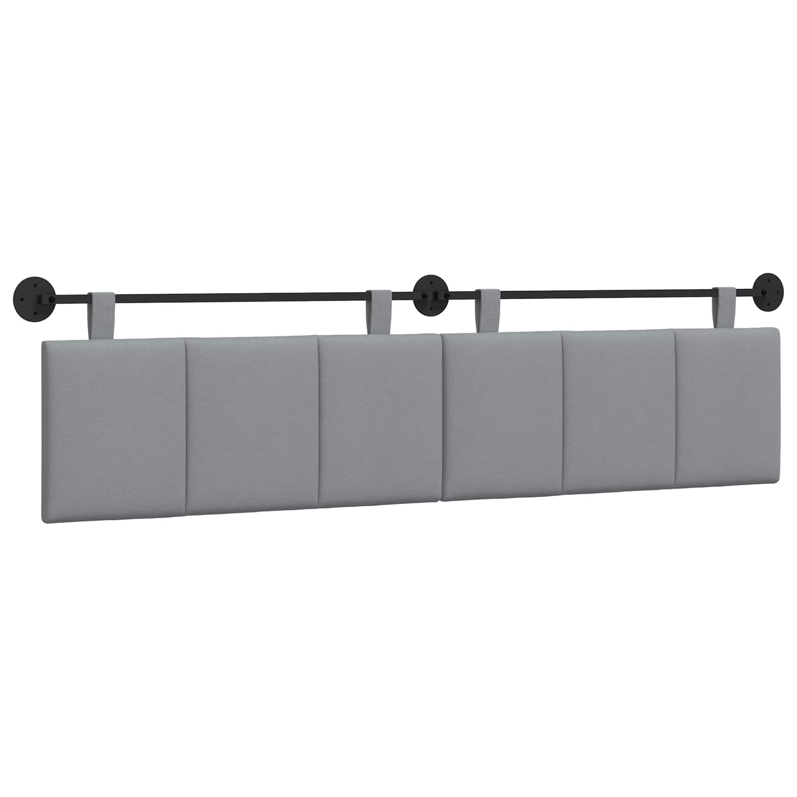 Dieses tolle Hängestück bringt moderne Einfachheit und Funktionalität zusammen. Mit seinem schlichten, rechteckigen Design und den eleganten Streifen peppt es jedes Schlafzimmer auf. Die weiche, gepolsterte Oberfläche lädt zum Entspannen ein – perfekt, um gemütlich zu sitzen oder zu lesen. Ideal für alle, die schicke Eleganz ohne viel Schnickschnack mögen. Es fügt sich harmonisch in verschiedene Inneneinrichtungen ein und bringt deine Schlafumgebung zum Strahlen. Elegante Stoffoberfläche Hergestellt aus 100% Polyester, bietet dieses Kopfteil atmungsaktiven Stoff für dauerhaften Komfort. Der Stoff hält lange und bleibt weich – perfekt für ein schickes Schlafzimmer. Integriertes Montagesystem Mit einer stabilen Metallleiste und Montagematerial für einfache Installation an der Wand. So sorgt es für einen sauberen, modernen Look, der den Platz optimal nutzt. Verstellbare Gurte Die abnehmbaren Gurte geben dir die Freiheit, das Kopfteil flexibel zu positionieren, je nach deinem Raum und deinen Wünschen. Weiche Polsterung Der Schaumkern sorgt für einen bequemen Sitz, perfekt zum Entspannen und Lesen. Damit unterstützt es ergonomisches Wohlbefinden. Einfacher Pflegeaufwand Zum Saubermachen reicht ein trockenes Tuch. Das macht die Pflege kinderleicht, ohne aggressive Reinigungsmittel einsetzen zu müssen.