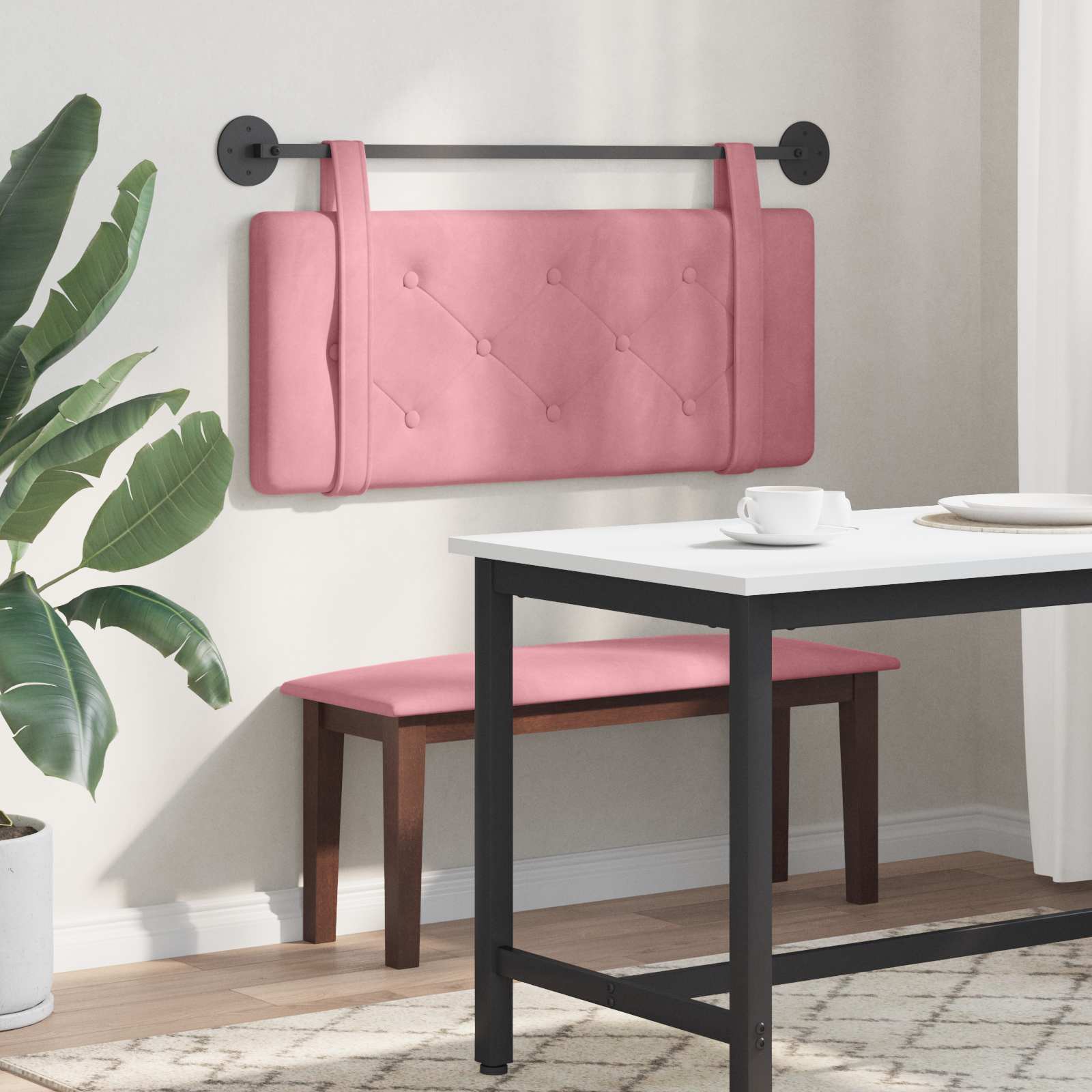 Dieses moderne hängende Kopfteil bringt Stil in jedes Schlafzimmer. Perfekt für alle, die Ästhetik und praktische Nutzung schätzen, sorgt sein minimalistisches Design für einen eleganten Look in deinem Zuhause. Mit seiner rechteckigen Form und dem schicken, geknöpften Muster ist es nicht nur ein Hingucker, sondern bietet auch eine gemütliche Atmosphäre zum Relaxen. Weiche Samtpolsterung Das Kopfteil hat einen luxuriösen Samtstoff, der eine angenehme Oberfläche zum Anlehnen bietet. Es ist super bequem und perfekt zum Entspannen oder Lesen im Bett. Mit seiner tollen Textur bringt es Stil und Komfort in dein Schlafzimmer. Holzwerkstoffrahmen Der Rahmen bietet stabilen Halt und ist leicht, was die Montage einfach macht. Er sorgt dafür, dass das Kopfteil sicher steht und lange hält. Das Material ist langlebig und zuverlässig. Geknöpftes Muster Das schicke, geknöpfte Design sieht nicht nur toll aus, es bietet auch extra gepolsterten Komfort. Jedes Detail ist ein feiner Akzent, der deinem Schlafzimmer Eleganz verleiht und es zum perfekten Rückzugsort macht. Wandmontagefähigkeiten Das Kopfteil wird an der Wand montiert, was Platz spart und ein schlankes Aussehen bringt. Die Wandmontage sorgt für Stabilität und hilft, dein Schlafzimmer aufgeräumt zu halten. Einfache Pflege Mit einfachen Pflegehinweisen lässt sich das Kopfteil leicht sauber halten. Wische es mit einem trockenen Tuch ab, und schon ist es wieder frisch und staubfrei. So bleibt es eine praktische und stilvolle Wahl für den Alltag.