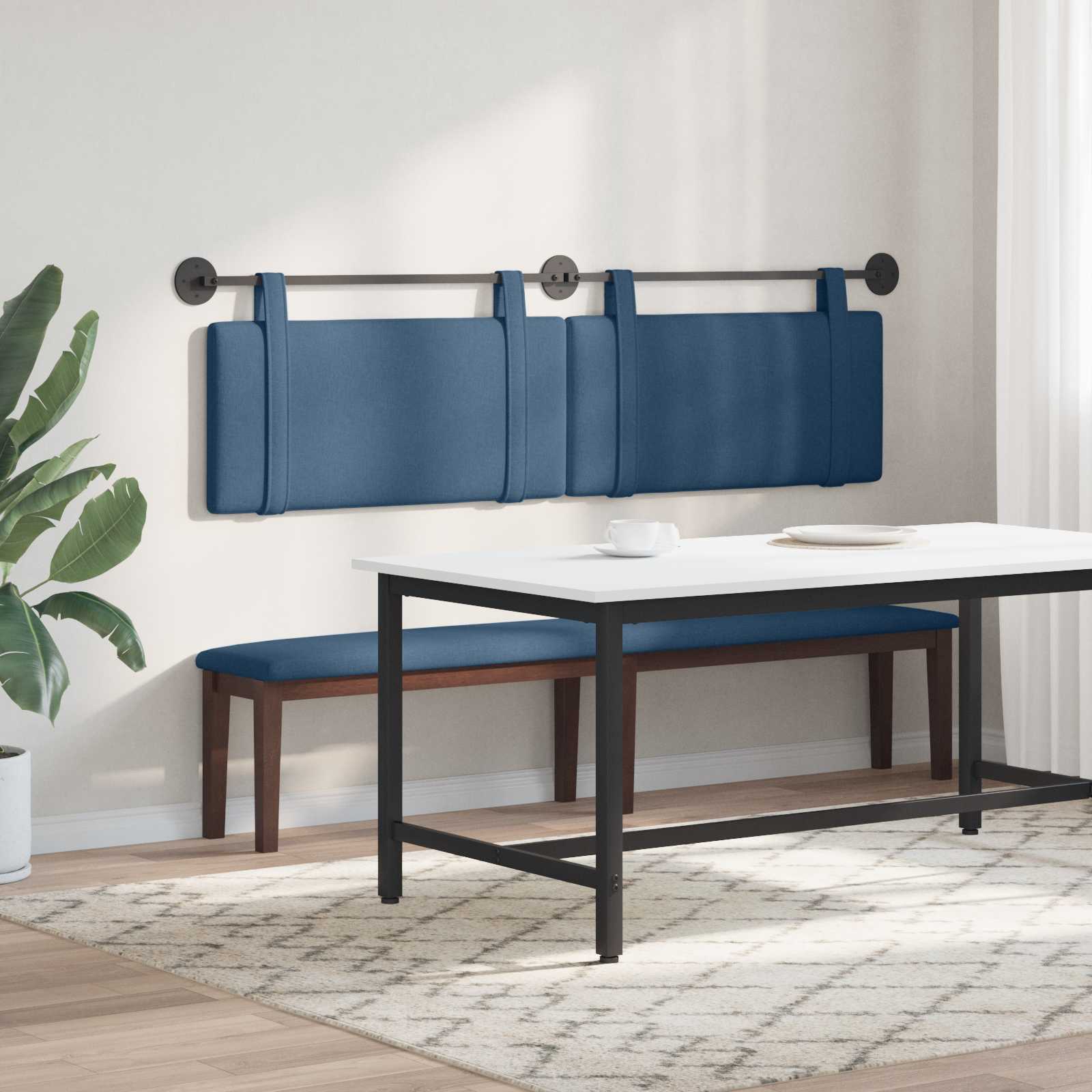 Mit diesem vielseitigen hängenden Kopfteil gibst du jedem Schlafzimmer ein neues Gesicht. Es ist so gefertigt, dass es toll mit vielen Bettrahmen harmoniert und hat einen weichen Stoff, der richtig schick aussieht und super bequem ist. Es wird zum Blickfang im Raum und verbindet modernes Design mit zeitlosem Charme. Perfekt für alle, die sich in einem warmen, stilvollen Umfeld wohlfühlen möchten, ist dieses Kopfteil nicht nur einfach ein Hintergrund, sondern hebt deinen Raum richtig auf. Stoffoberfläche: Dieses Kopfteil hat eine super elegante Stoffoberfläche, die nicht nur gut aussieht, sondern auch eine gemütliche Berührung hat. Es macht das Schlafzimmer sofort einladender, und der langlebige Stoff sorgt dafür, dass es auch über die Jahre schön bleibt und alltäglichen Gebrauch aushält. Wandmontiertes Design: Mit einem coolen Wandmontagesystem ist das Kopfteil einfach zu befestigen – kein Platz für sperrige Beine oder Verbindungen, alles ist schön schlank und sicher. Ideal für alle Räume, klein oder groß, es bietet die perfekte Kulisse für dein Schlafzimmer. Breite Kompatibilität: Dieses hängende Kopfteil passt mit fast allen Bettrahmen und harmoniert perfekt mit deiner Schlafzimmermöbel. Es hat eine neutrale Farbe und ein klassisches Design, das einfach in jeden Stil passt – ob modernes Apartment oder gemütliches Familienzimmer. Platzsparende Funktion: Da es an der Wand montiert ist und keinen traditionellen Rahmen hat, spart dieses Kopfteil echt Platz auf dem Boden. Super für kleine Räume! So kannst du mehr von deinem Platz nutzen und dem Schlafzimmer einen schick-minimalistischen Look verleihen. Geringer Pflegeaufwand: Pflegeleicht! Einfach hin und wieder absaugen und kleine Flecken vorsichtig behandeln. Ideal für alle, die eine unkomplizierte Pflege bevorzugen – das Kopfteil bleibt stylish mit minimalem Aufwand.