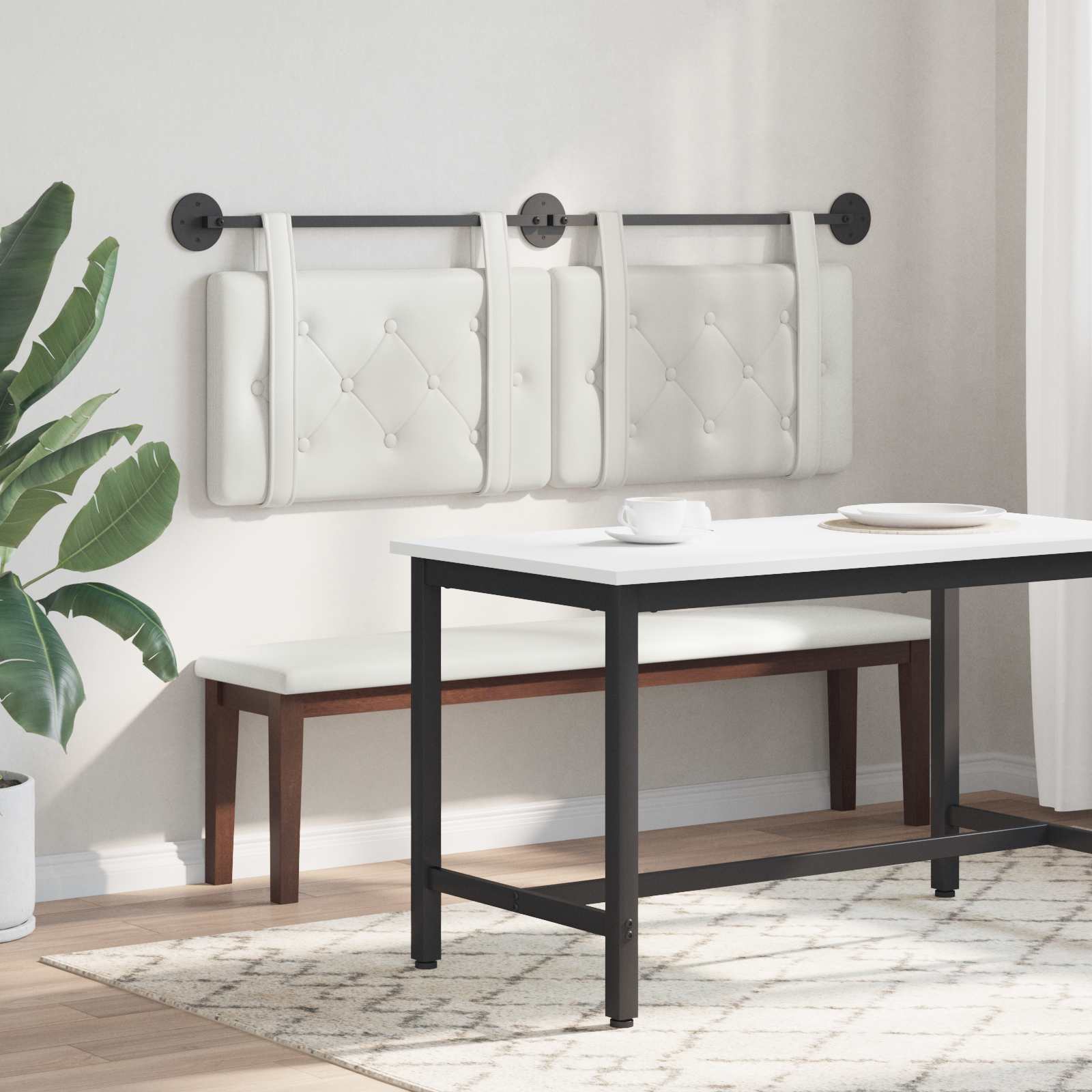 Das moderne, wandmontierte Kopfteil ist eine schicke Ergänzung für jedes Schlafzimmer. Es bringt sowohl praktische als auch optische Vorteile mit sich. Mit seinem schlanken Design fügt es sich harmonisch in moderne und minimalistische Räume ein, ohne sie zu überladen. Das Kopfteil sorgt für eine elegante Atmosphäre und ist der perfekte Hintergrund für einen erholsamen Schlaf. Die glatte Oberfläche und die Knopfsteppung machen es zu einem einladenden Blickfang, der deinem Raum einen Hauch von Luxus verleiht. Es passt nicht nur ins Hauptschlafzimmer, sondern macht auch im Gästezimmer oder neben Sitzbänken eine gute Figur. Optimal genutzt, spart es Wandfläche und bringt Tiefe in kleinere Räume. Holzwerkstoffkonstruktion: Das wandmontierte Kopfteil aus Holzwerkstoff ist stabil und langlebig. Der Stoff gibt dem Kopfteil eine moderne Note und sorgt dafür, dass es dir lange Freude bereitet. Schaumstofffüllung: Das weiche Schaumstoffpolster sorgt für einen bequemen Rückhalt, auf dem du dich gut anlehnen kannst. Es schafft eine gemütliche Atmosphäre und unterstützt dich perfekt beim Entspannen. Knopfsteppung: Die elegante Knopfsteppung gibt dem Kopfteil einen stilvollen Look und passt gut zu deiner Raumdeko. Das Design bringt einen modernen Touch und macht das Kopfteil zu einem echten Hingucker. Abnehmbare Riemen: Die praktischen Riemen mit Klettverschluss sorgen dafür, dass du das Kopfteil einfach an der Wand befestigen kannst. Das macht die Montage leicht und verschafft dir Flexibilität bei der Raumgestaltung. Einfache Pflege: Halte dein Kopfteil einfach sauber, indem du es mit einem trockenen Tuch abwischst. Mit dieser einfachen Pflege bleibt es stets in Top-Zustand und sieht gut in deinem Schlafzimmer aus.