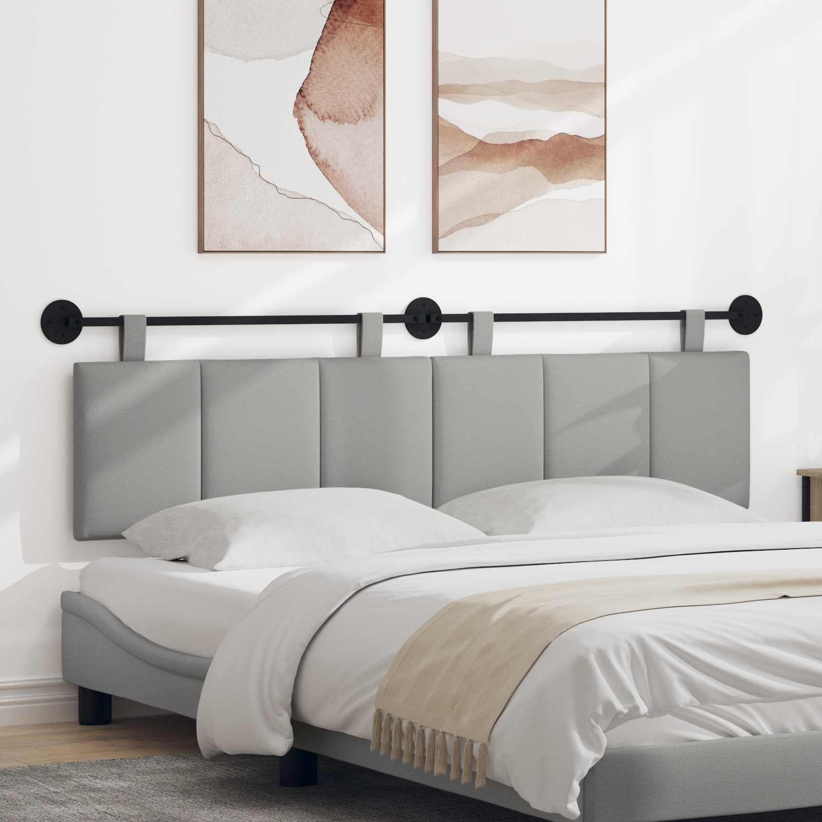Dieses tolle Hängestück bringt moderne Einfachheit und Funktionalität zusammen. Mit seinem schlichten, rechteckigen Design und den eleganten Streifen peppt es jedes Schlafzimmer auf. Die weiche, gepolsterte Oberfläche lädt zum Entspannen ein – perfekt, um gemütlich zu sitzen oder zu lesen. Ideal für alle, die schicke Eleganz ohne viel Schnickschnack mögen. Es fügt sich harmonisch in verschiedene Inneneinrichtungen ein und bringt deine Schlafumgebung zum Strahlen. Elegante Stoffoberfläche Hergestellt aus 100% Polyester, bietet dieses Kopfteil atmungsaktiven Stoff für dauerhaften Komfort. Der Stoff hält lange und bleibt weich – perfekt für ein schickes Schlafzimmer. Integriertes Montagesystem Mit einer stabilen Metallleiste und Montagematerial für einfache Installation an der Wand. So sorgt es für einen sauberen, modernen Look, der den Platz optimal nutzt. Verstellbare Gurte Die abnehmbaren Gurte geben dir die Freiheit, das Kopfteil flexibel zu positionieren, je nach deinem Raum und deinen Wünschen. Weiche Polsterung Der Schaumkern sorgt für einen bequemen Sitz, perfekt zum Entspannen und Lesen. Damit unterstützt es ergonomisches Wohlbefinden. Einfacher Pflegeaufwand Zum Saubermachen reicht ein trockenes Tuch. Das macht die Pflege kinderleicht, ohne aggressive Reinigungsmittel einsetzen zu müssen.