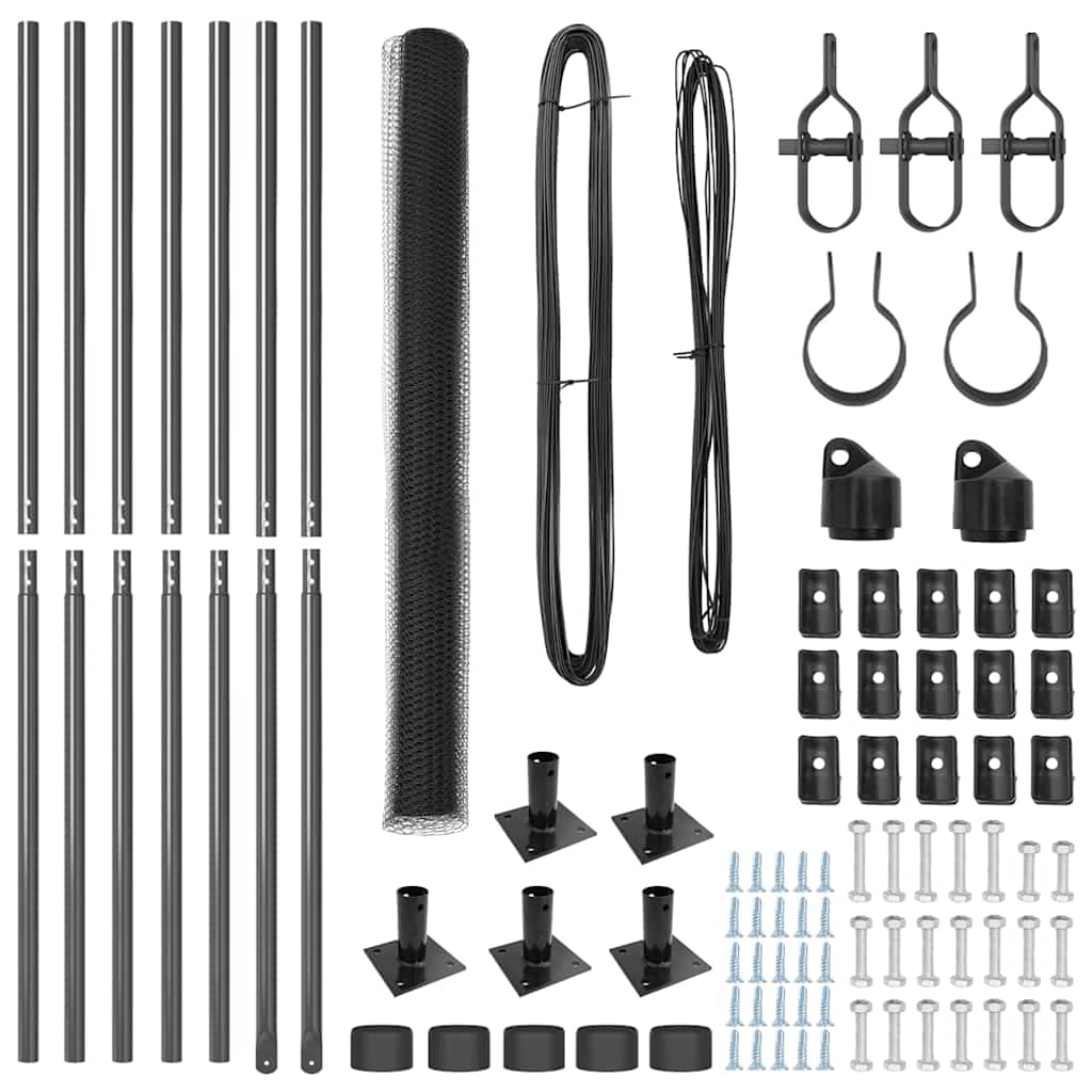 - Lieferumfang: 5 Pfosten, Maschendrahtrolle, zwei Drahtrollen, Verbindungsstücke