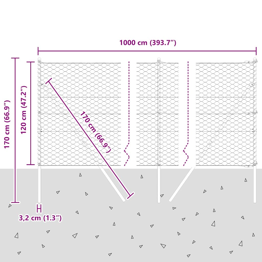 Der Hexagonzaun ist die perfekte Lösung zur sicheren Einzäunung deines Gartens oder Außenbereichs. Mit seinem stylischen Look aus verzinktem Stahl und der robusten Bauweise, ist er eine tolle Ergänzung für jeden Außenraum und bleibt dabei stabil und sicher. Robustes Material: Hergestellt aus verzinktem Stahl, ist dieses Zaunset stark genug, um windigen und regnerischen Bedingungen standzuhalten und für eine lange Lebensdauer zu sorgen. Ideal für draußen: Die schicke graue Farbe fügt sich gut in die Umgebung ein und bietet eine starke Barriere für Haustiere und Kinder, ohne dabei aufzufallen. Einfache Montage: Stelle es schnell mit zwei Personen und wenigen Werkzeugen wie Hammer und Bohrmaschine auf, damit du deinen Garten bald genießen kannst. Verschiedene Größen: Mit 10 x 1,2 m lässt sich dieser Zaun an verschiedene Orte anpassen, perfekt für unterschiedliche Gartenformen und -größen. Komplettset: Kommt mit allem, was du brauchst – Zaunpfosten, Drahtgeflecht und Montagen – für eine einfache Installation.