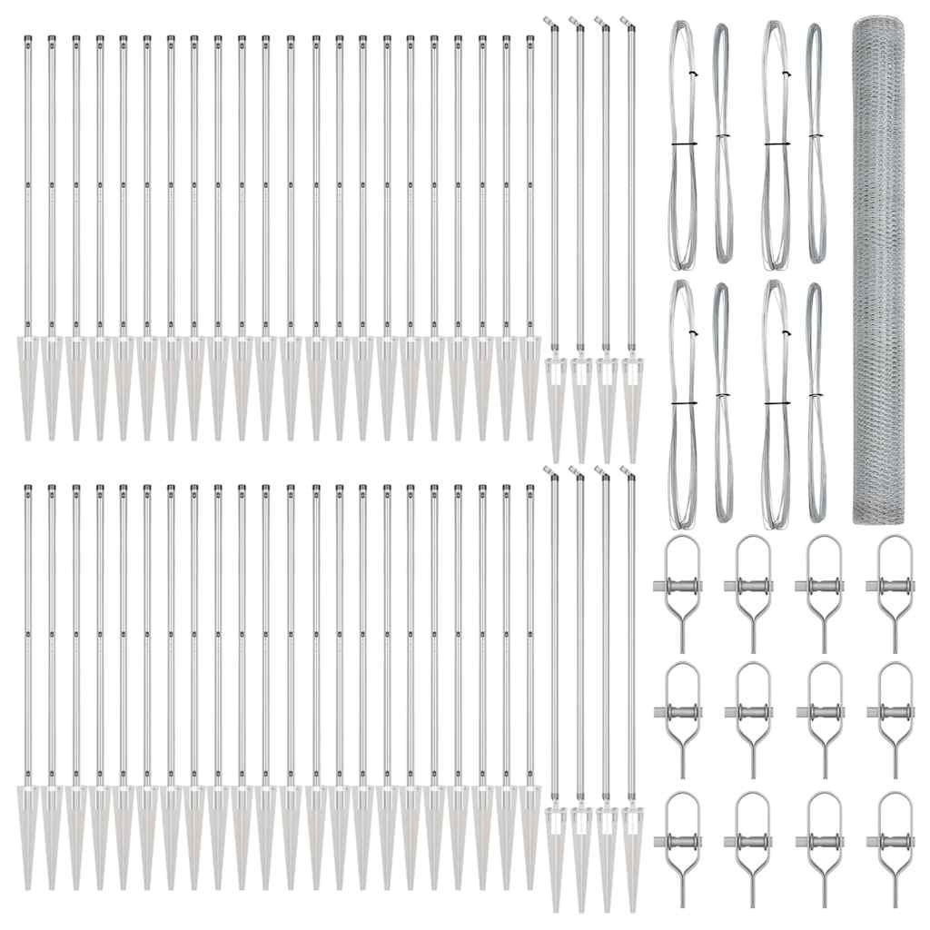 - Lieferumfang: Zaunpfosten, Spikes, verzinktes Stahlgitter, Drähte, Befestigungselemente
