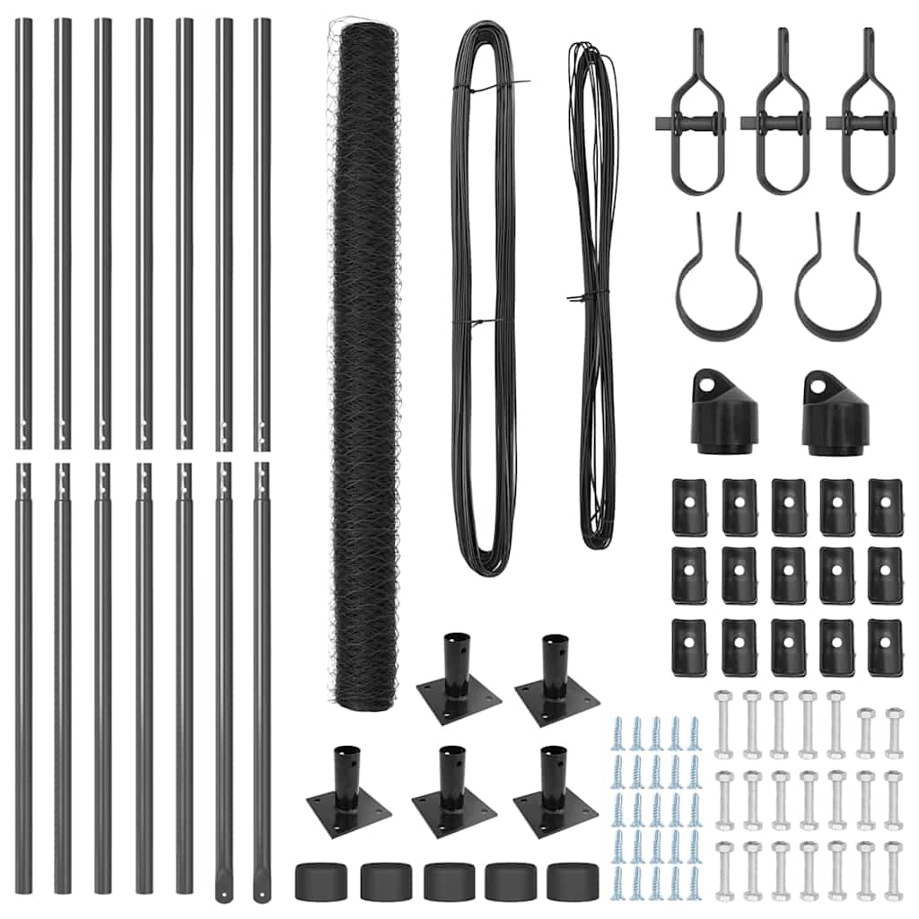 Der Hexagonzaun wurde entwickelt, um deine Außenbereiche sicher zu machen, während er gleichzeitig stylisch aussieht. Die schicke graue Oberfläche und der stabile Aufbau sorgen nicht nur für Sicherheit, sondern werten auch das Aussehen jedes Gartens oder Hofs auf. Das macht ihn zur besten Wahl für verschiedene Outdoor-Setups. Robustes Material: Aus pulverbeschichtetem Stahl, bietet dieser Zaun langlebige Leistung und schützt vor Rost und UV-Schäden. Die schützende Oberfläche erhöht die Haltbarkeit gegenüber den Elementen. Ideal für Gärten: Die stylische graue Farbe fügt sich perfekt in moderne Außenstile ein und bietet eine sichere Barriere für Haustiere oder Kinder, während er gleichzeitig gut aussieht. Einfache Montage: Für eine mühelose Installation kann dieser Zaun blitzschnell von zwei Personen mit grundlegenden Werkzeugen wie einem Maulschlüssel, Hammer, Maßband und Schraubendreher einfach zusammengesteckt werden. Umfassendes Set: Dieses komplette Set enthält fünf starke Zaunpfosten, eine 25 m Zaunrolle, Stützdrähte und Spannvorrichtungen, um sicherzustellen, dass du alle Teile für eine unkomplizierte Montage hast.