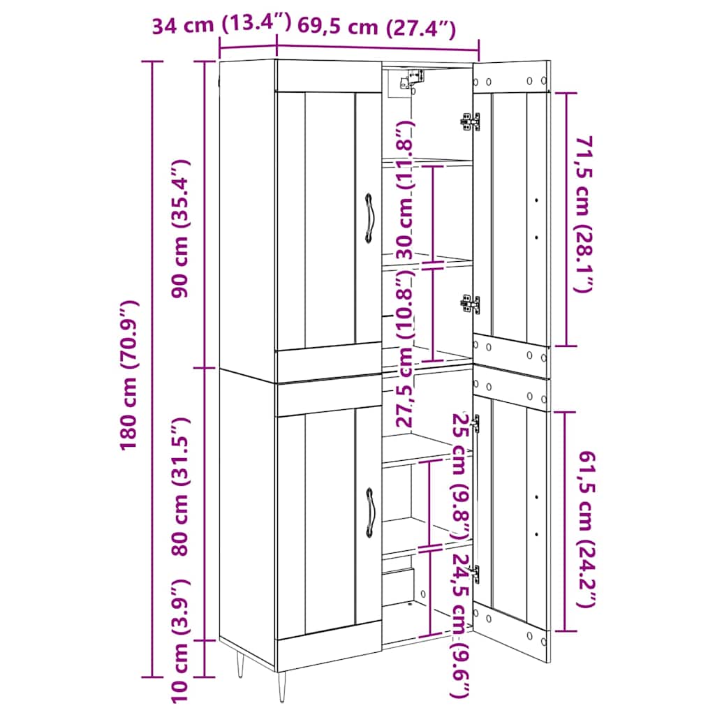 - Gesamtabmessungen: 69,5 x 34 x 180 cm (L x B x H)