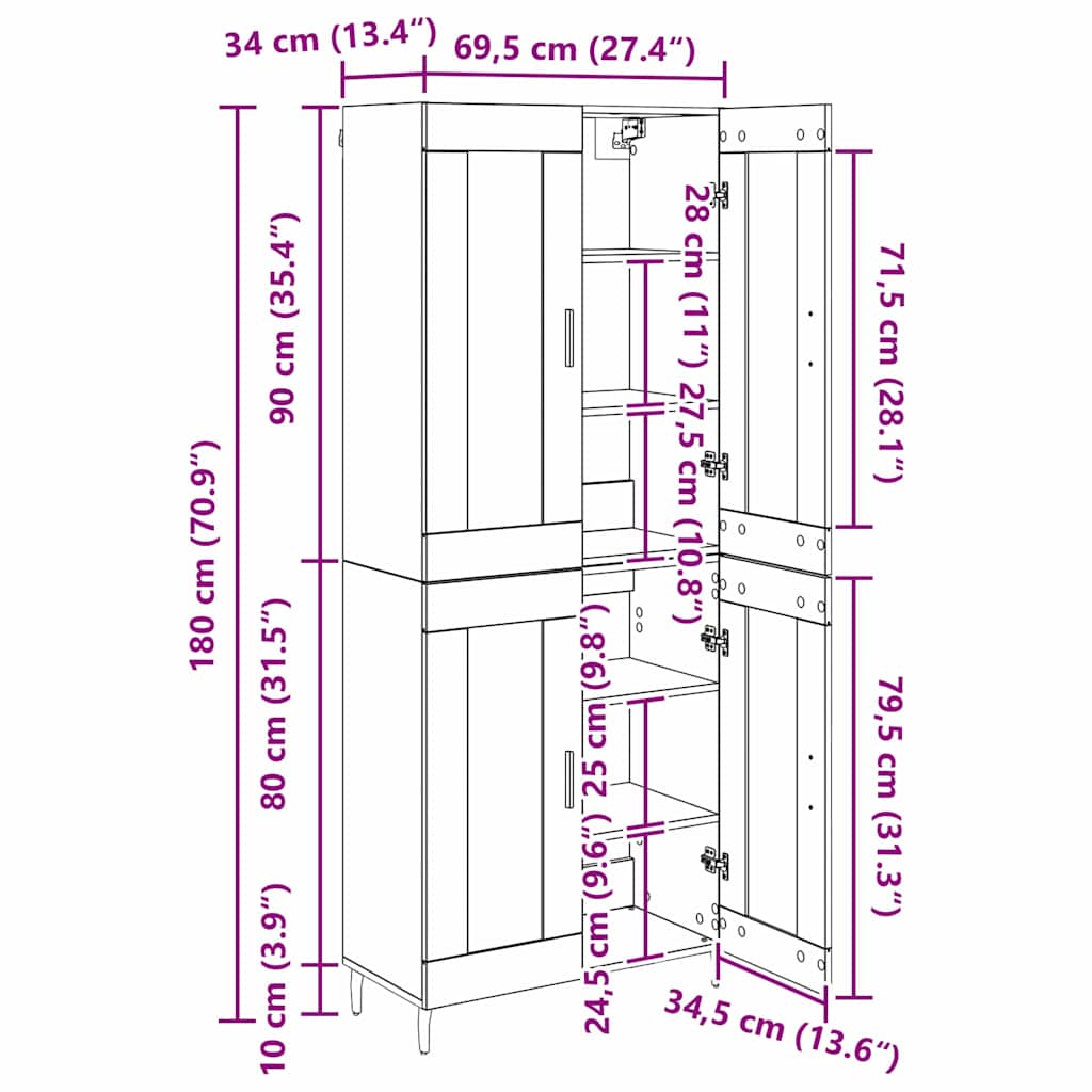 - Gesamtabmessungen: 69,5 x 34 x 180 cm (L x B x H)