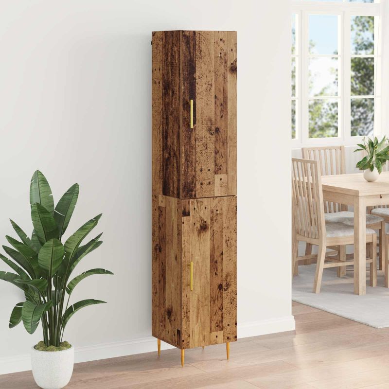 Dieser moderne Hochschrank ist eine stylische Aufbewahrungslösung für dein Wohnzimmer oder Esszimmer. Mit seinem hohen, rechteckigen Design bringt er sowohl Funktion als auch frischen Wind mit klaren Linien und minimalistischem Look. Ideal für urbane Wohnungen, die nach einem schicken Stauraum suchen, hilft dir dieses Möbelstück, deine Esswaren, Bücher oder Deko ordentlich zu organisieren. Holzwerkstoff-Konstruktion: Der Hochschrank ist aus hochwertigem Holzwerkstoff gefertigt und bietet eine tolle Mischung aus Stabilität und schickem Aussehen. Er passt super zu modernen Einrichtungsstilen und hält den täglichen Anforderungen stand. Praktische Komponenten: Ausgestattet mit Regalböden, bietet der Hochschrank Platz für Geschirr, Tabletts oder Sammlerstücke. Dank der Scharnier-Türen hast du einfachen Zugang, während die Rückwand aus Holzwerkstoff für zusätzliche Stabilität sorgt und deine Sachen sicher aufbewahrt. Moderne Merkmale: Die eleganten Bargriffe in Gold setzen einen coolen Kontrast zu den schwarzen, schrägen Beinen und betonen den modernen Look des Hochschranks. Die Griffe ermöglichen ein sanftes Öffnen und Schließen der Türen und verleihen dem Möbelstück einen stylishen Touch. Vielseitige Nutzung: Der Hochschrank eignet sich vor allem für innen und ist perfekt für verschiedene Räume, sei es im Essbereich oder im Wohnzimmer. Er passt gut zu modernen Stilen und sorgt für einen frischen Akzent in deiner Einrichtung, während er gleichzeitig praktischen Stauraum bietet. Sicherheit und Pflege: Achte darauf, die Montageanleitung des Herstellers zu befolgen und sichere den Hochschrank an der Wand, damit er nicht umkippt. Regelmäßiges Staubwischen mit einem weichen, trockenen Tuch hilft ihm, schön auszusehen.