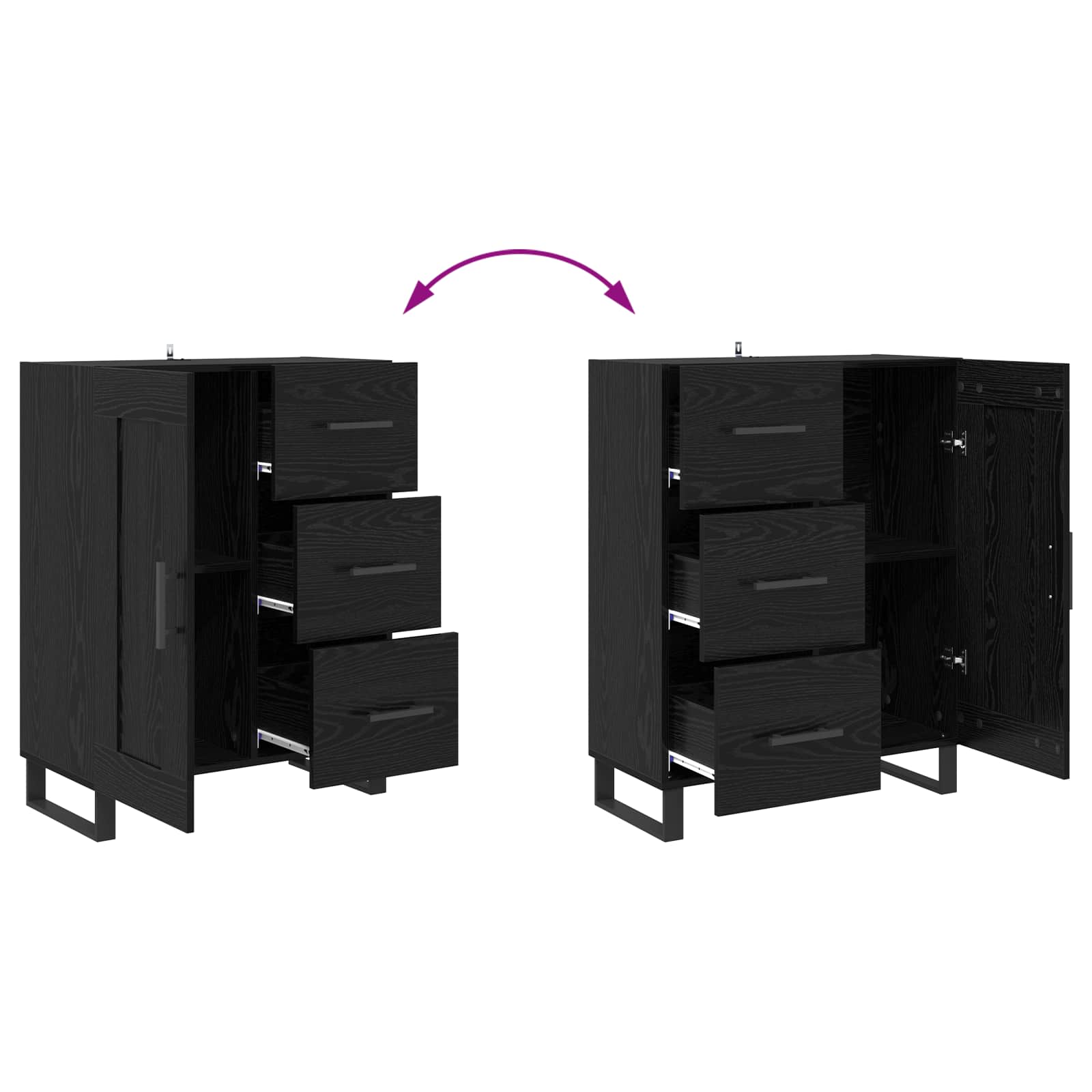 Highboard 2 pcs Schwarz Eichen-Optik Engineered Wood und Glas