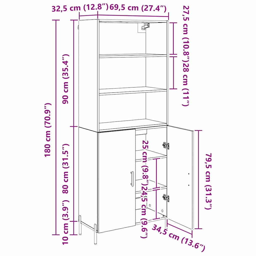 Highboard Altholz 69,5 x 32,5 x 180 cm Holzwerkstoff