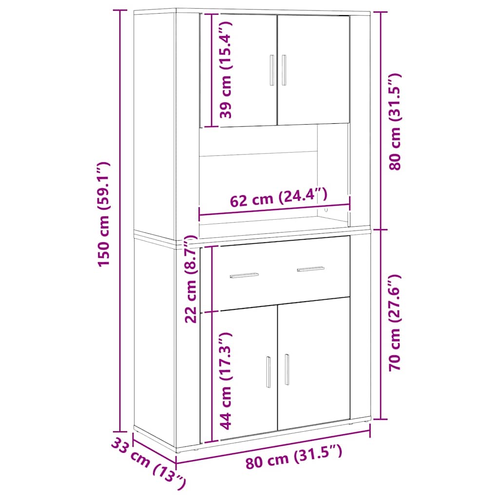 - Gesamtabmessungen: 80 x 33 x 150 cm (L x B x H)