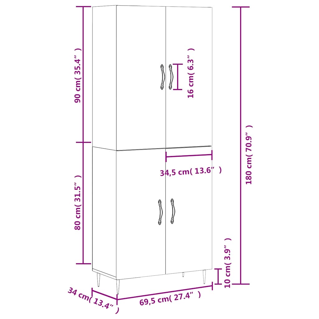 Highboard Betongrau 69,5x34x180 cm Holzwerkstoff