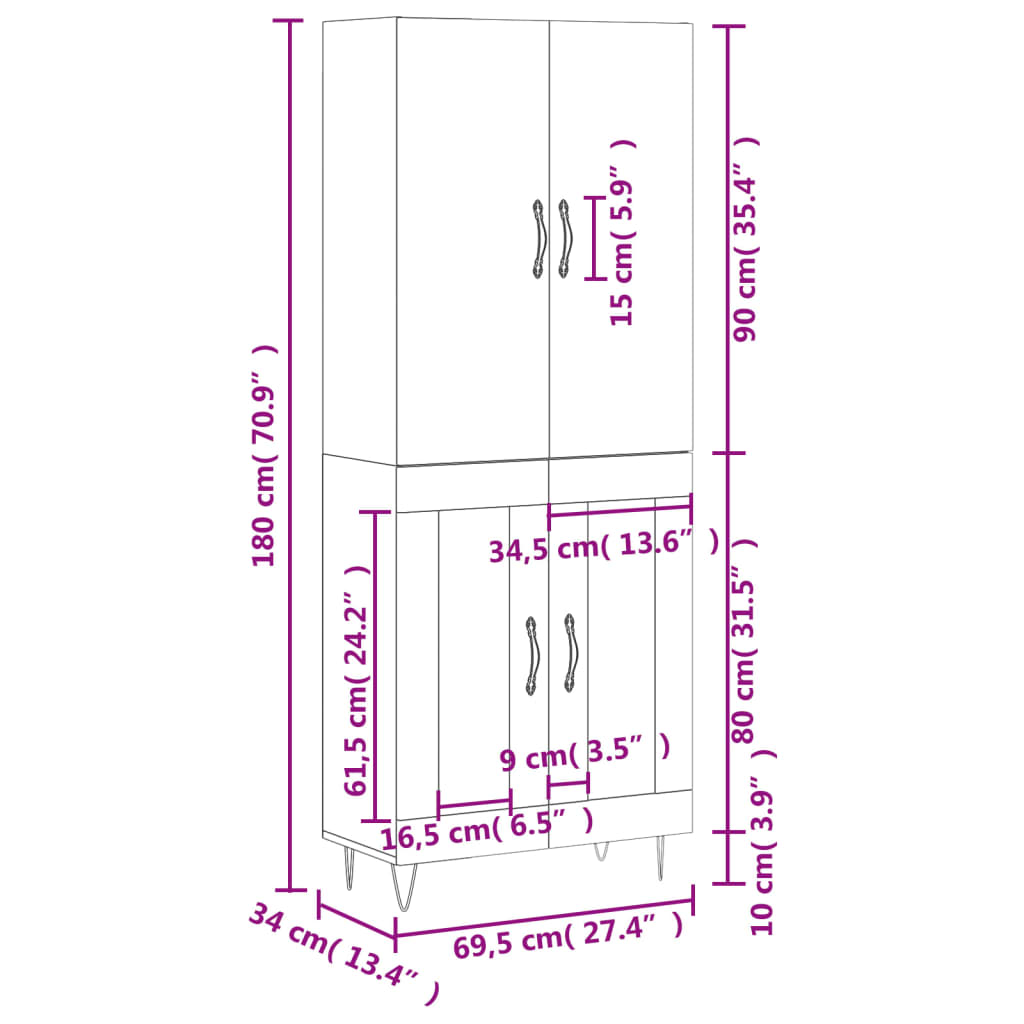 Highboard Betongrau 69,5x34x180 cm Holzwerkstoff