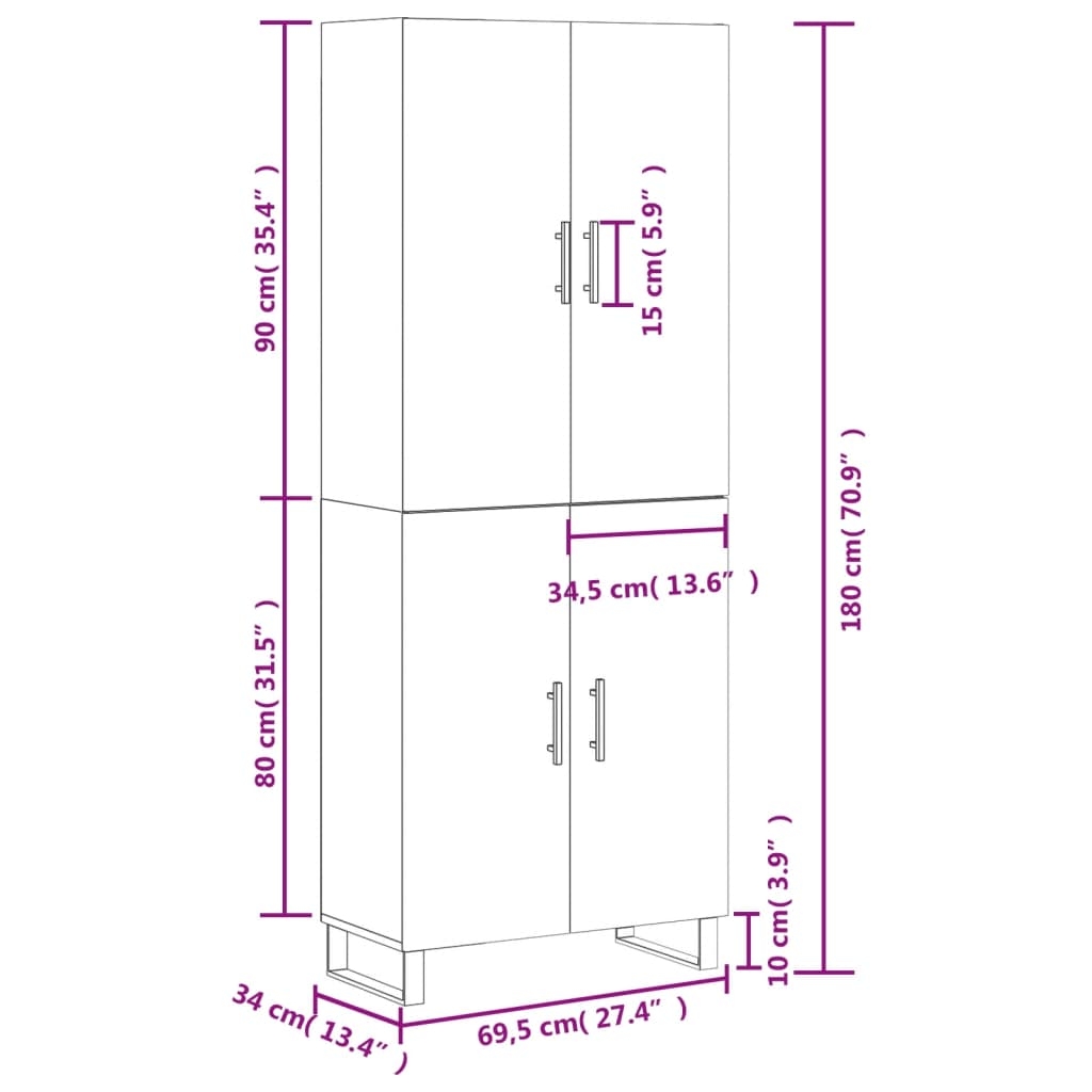 - Abmessungen des Sideboards: 69,5 x 34 x 90 cm (B x T x H)